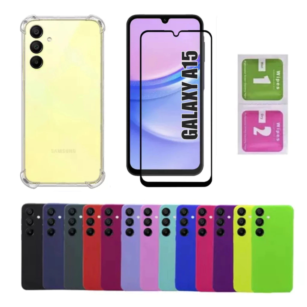Pelicula Vidro 3D Samsung A15 A06 A16 A55 A56 A35 A14 + Capa Aveludada Colorida Capinha Samsung