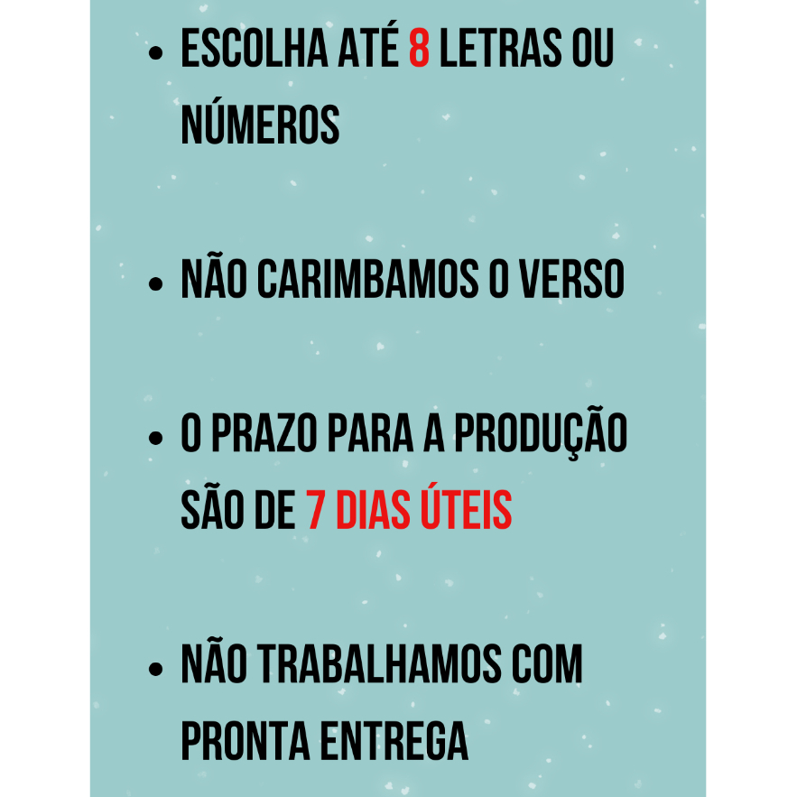 Sob encomenda: envio após 7 dias da compra