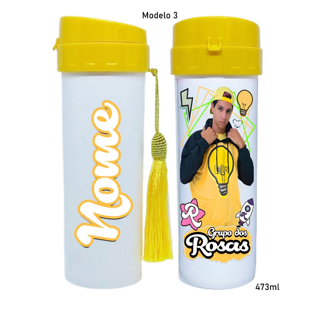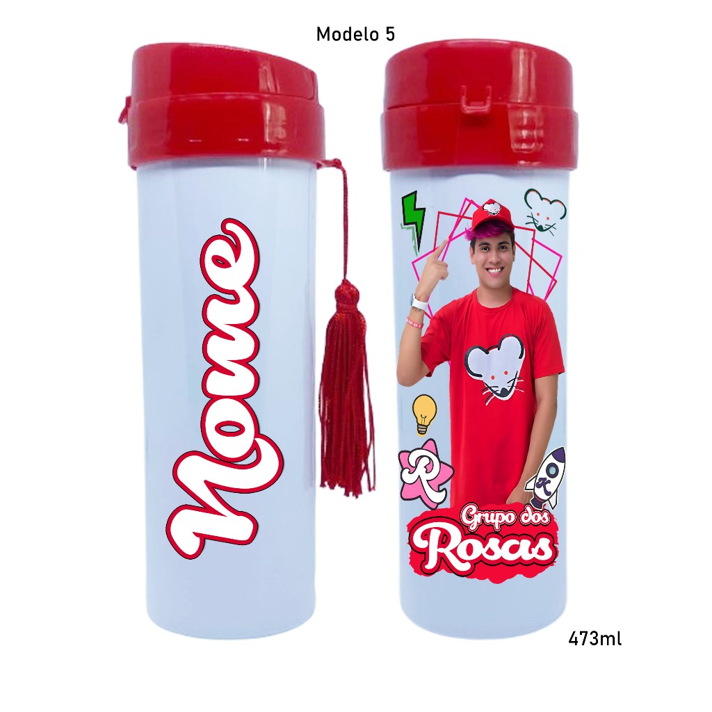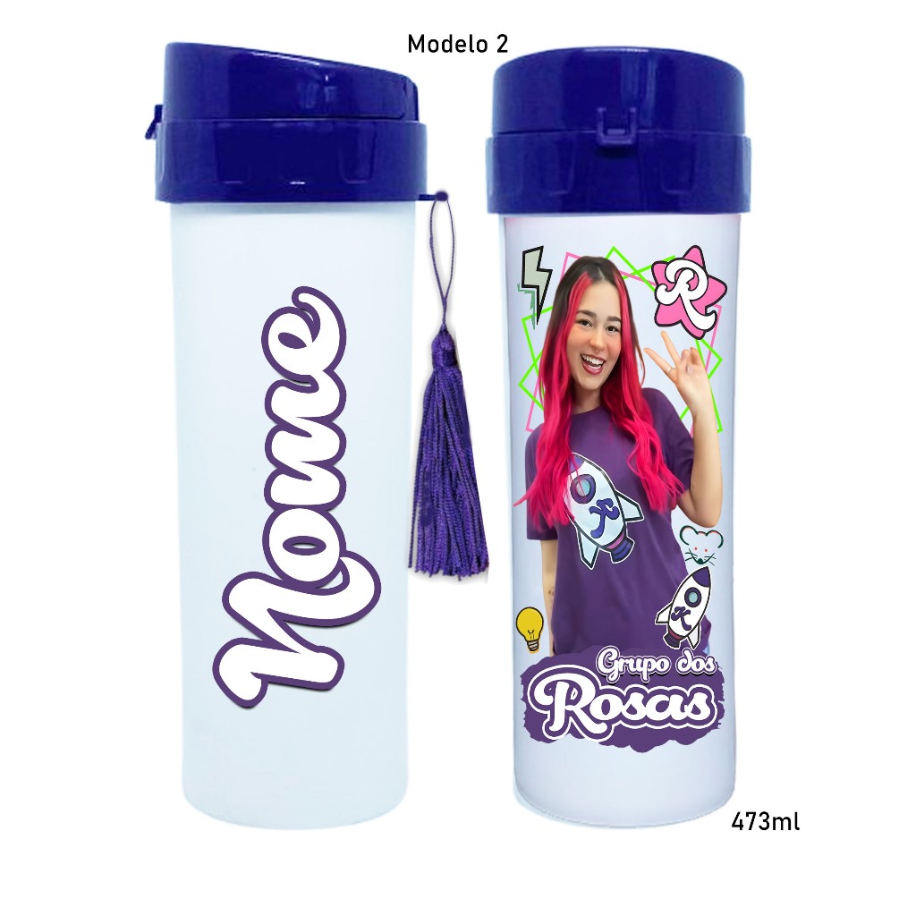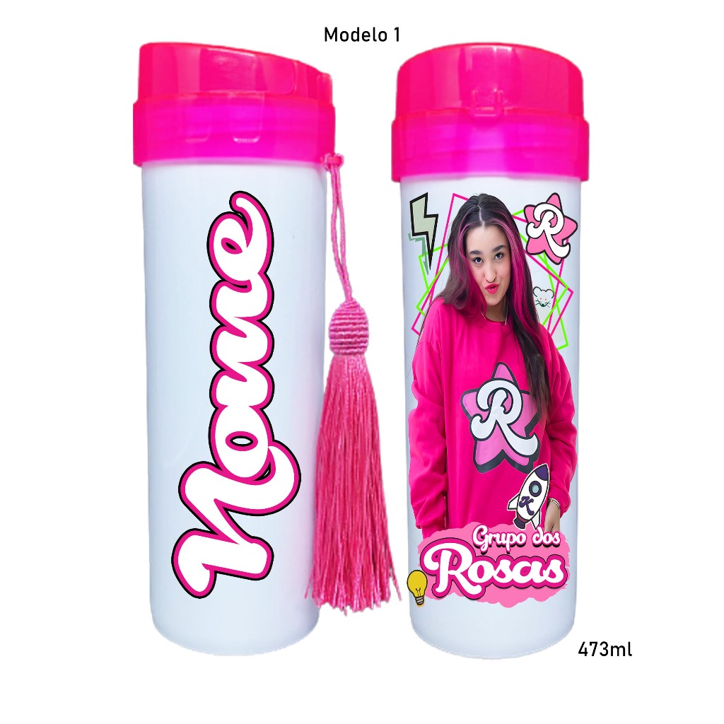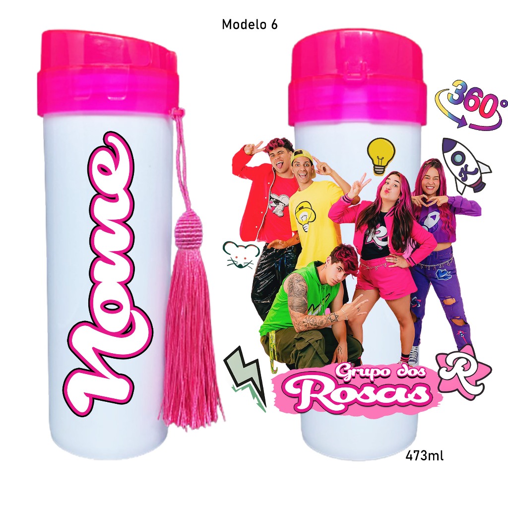 Garrafinha de agua Grupo dos Rosa katlen emilly leozinho void robson personagens com seu nome