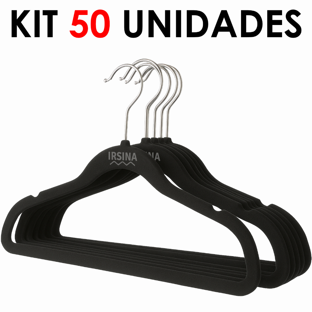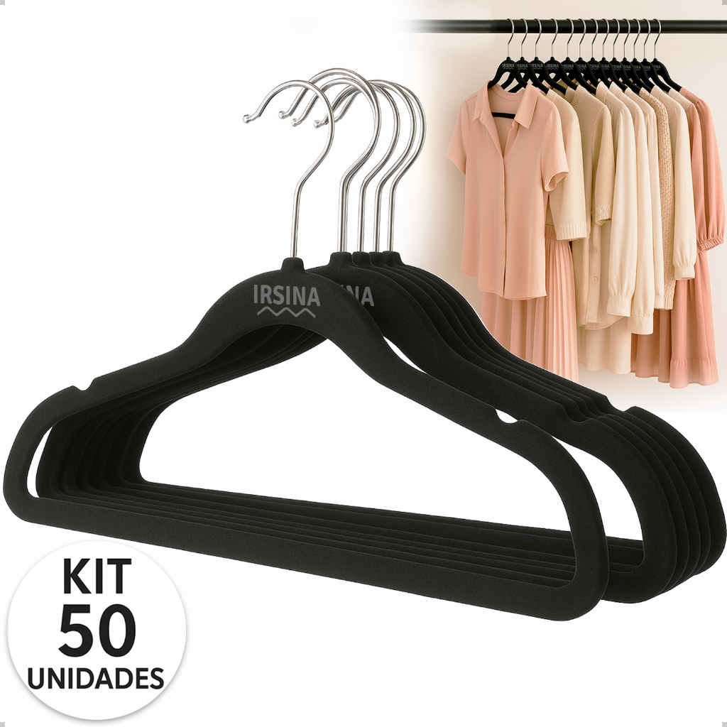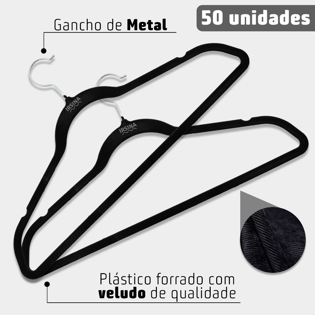 Kit 50 Cabides Veludo Slim Adulto Antiderrapante Ultra fino, Resistente e Organizador