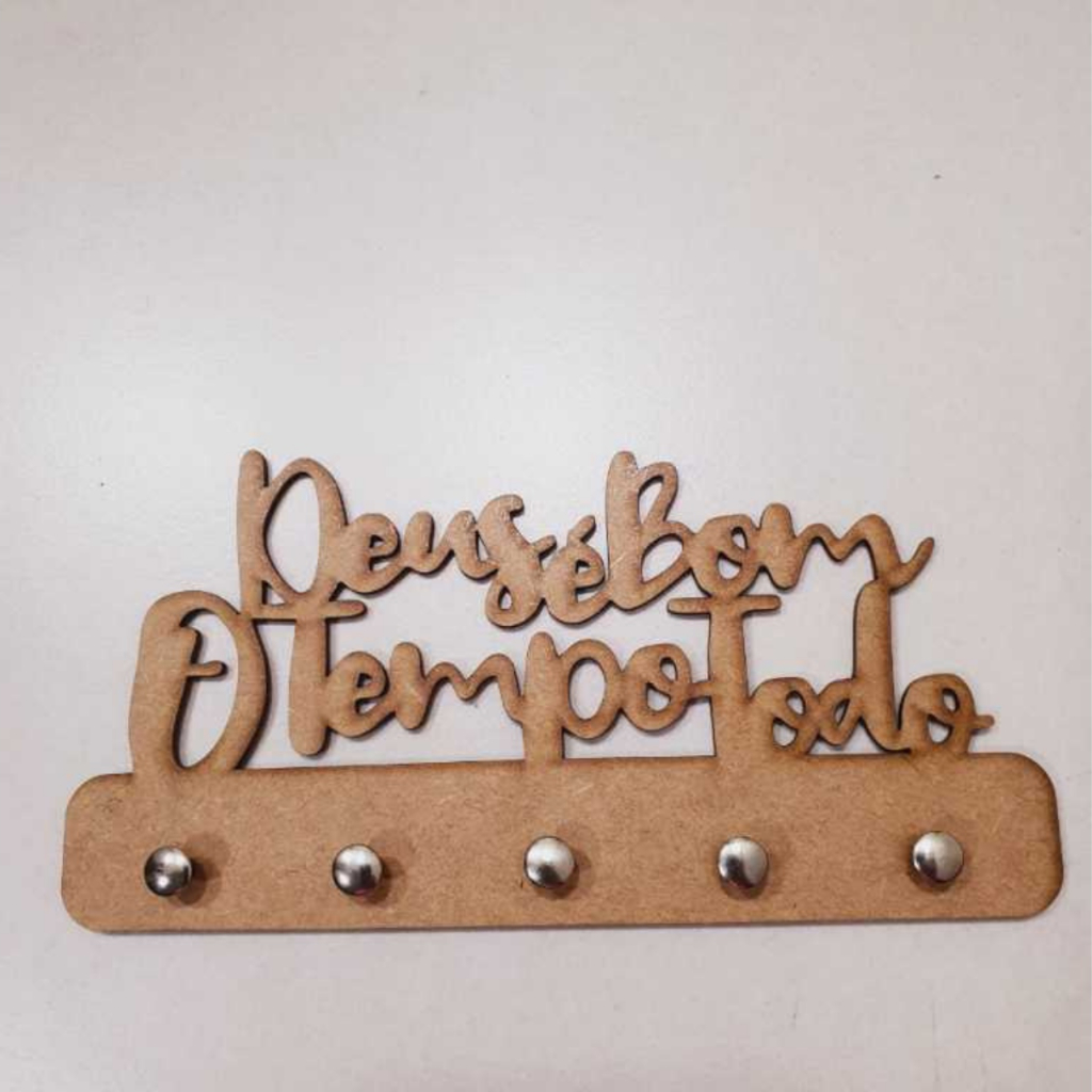 Porta Chaves de Parede Decorativo Multiuso em MDF 3mm Preto Deus é Bom o Tempo Todo Envio Imediato