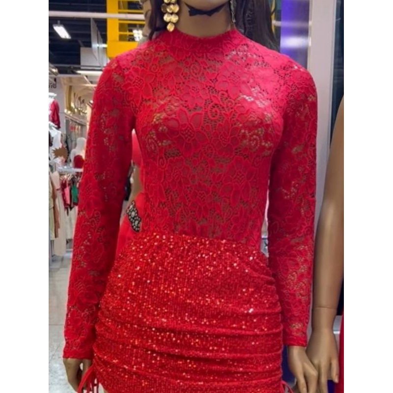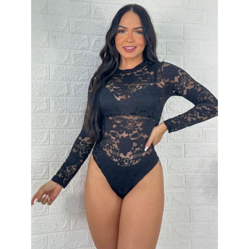 Body Sensual Renda Floral Manga Longa Elegante Simone