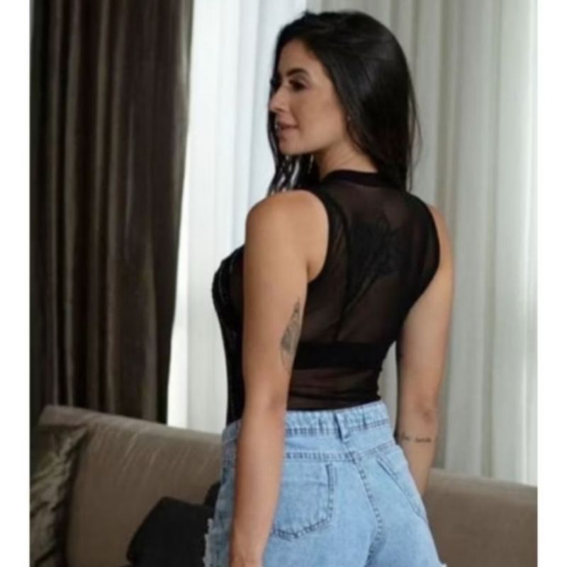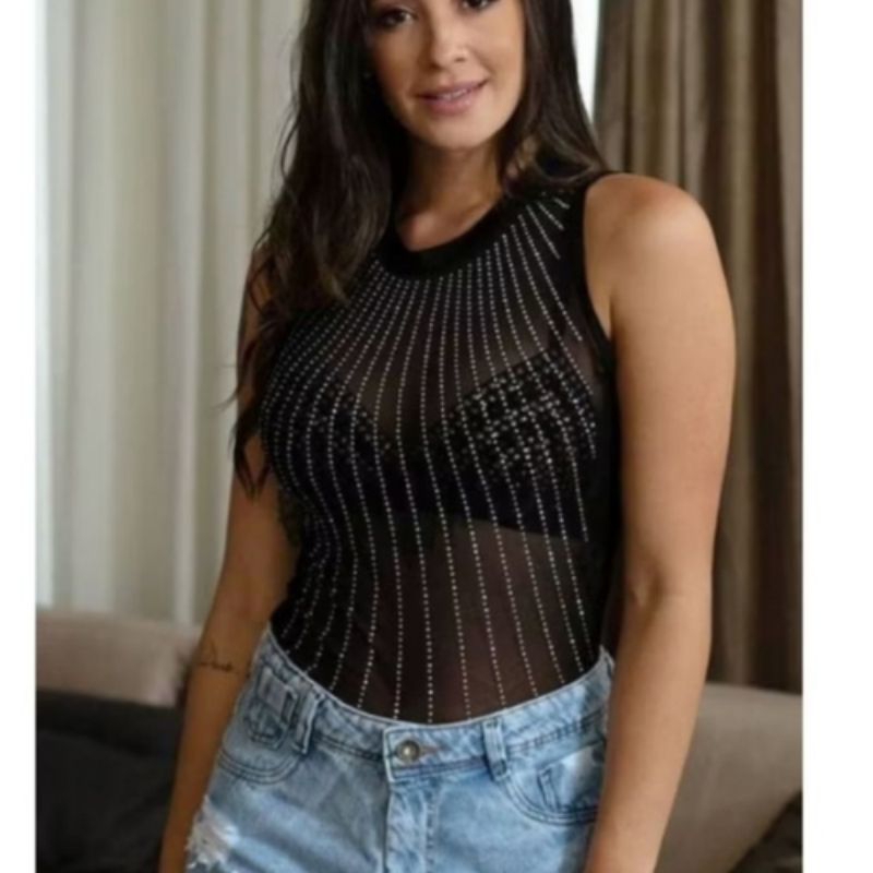 BODY REGATA TULE TRANSPARENTE PEDRARIAS DE BRILHO CHUVA