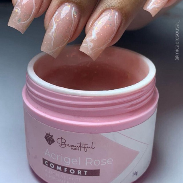 Gel Acrigel Rose 14g - Beautiful Nails- Linha Comfort- autonivelante, unhas artificiais, gel construtor, gel hard