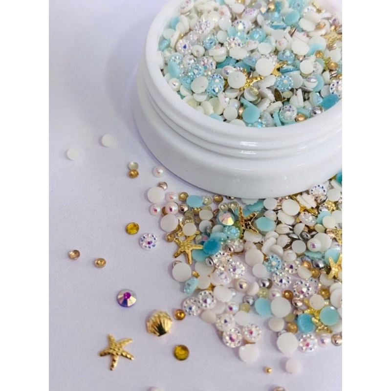 2 unid Mix de pedrarias Fundo do Mar, com estrelas do mar, pedrarias em tons sereia e meia pérolas com strass.