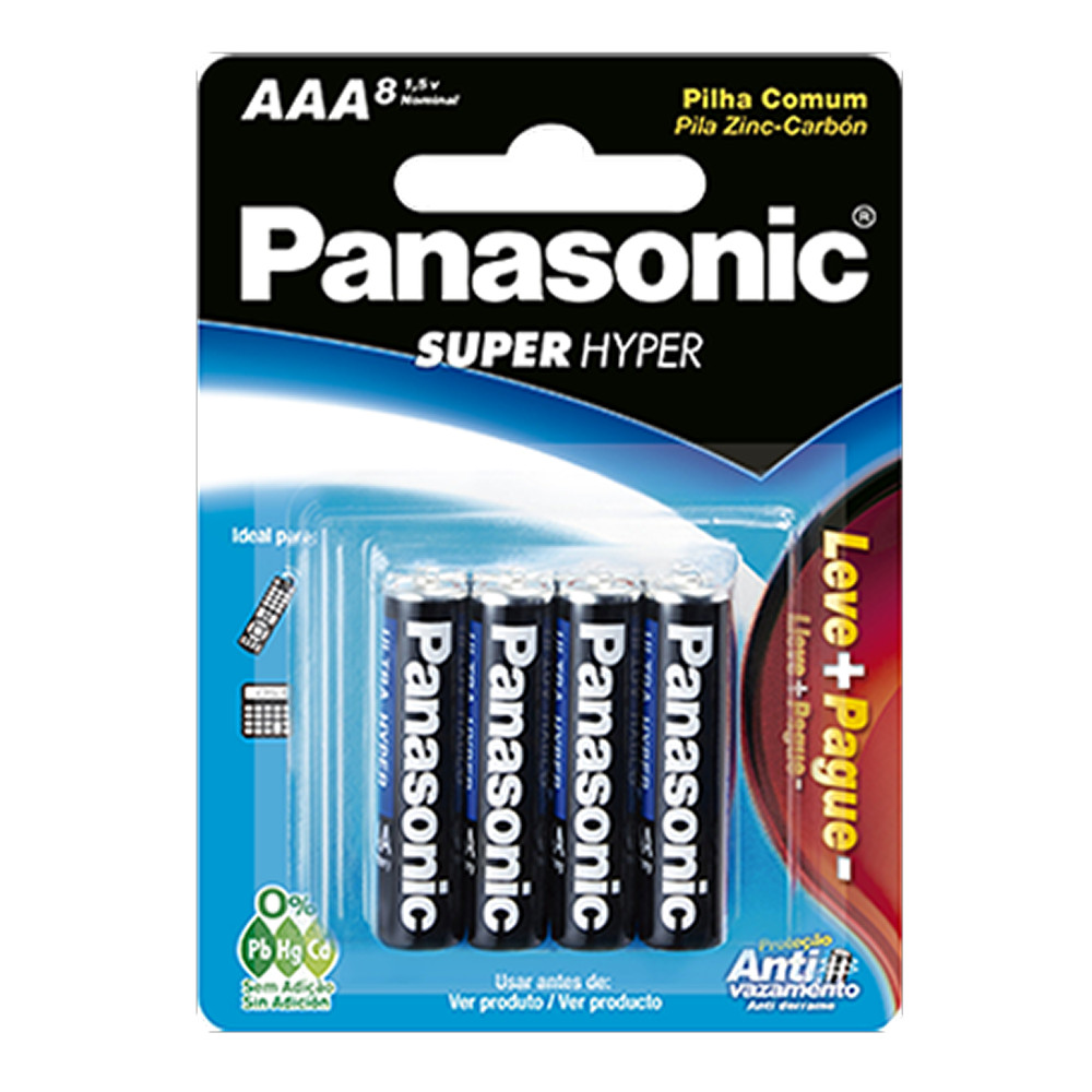 8 Pilha Panasonic AAA Palito Comum Super Hyper Antivazamento