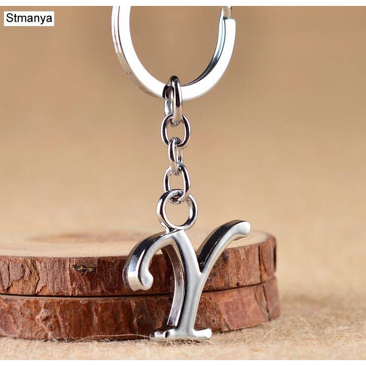 Novo DIY A-Z Cartas Chaveiro Porta-Chaves Prata Cor Metal Mulher Carro Nome Carta Simples Festa Jóias Presente