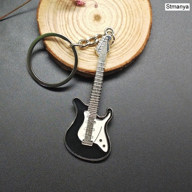 Guitarra Chaveiro De Metal 6 Cor Chaveiro Bonito Musical Anel Chave Do Carro Cor Prata Pingente Para O Homem Mulheres Do Presente Do Partido