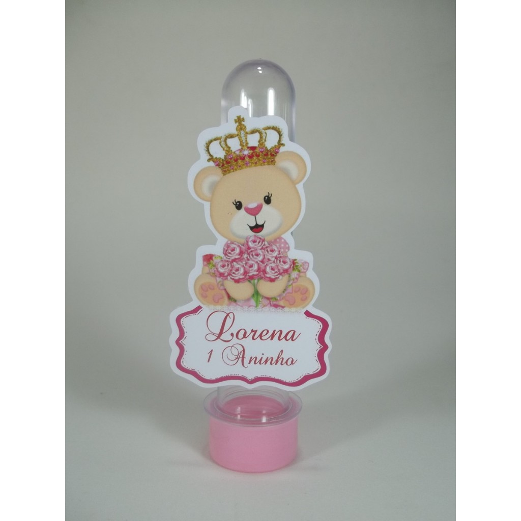 Tubete Personalizado Ursinha Princesa Kit com 10 / 15 / 20 / 25 / 30 / 40 / 50 Unidades
