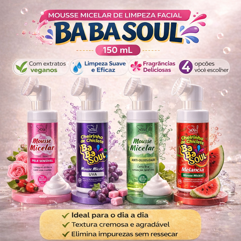 Mousse Micelar Facial Soul 150ml Limpeza Suave – Rosa Mosqueta, Uva, Soul Skin, Melancia