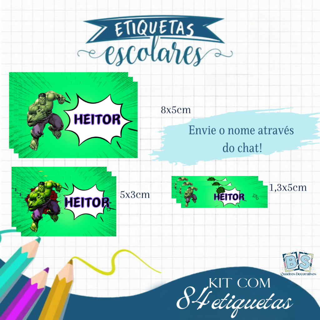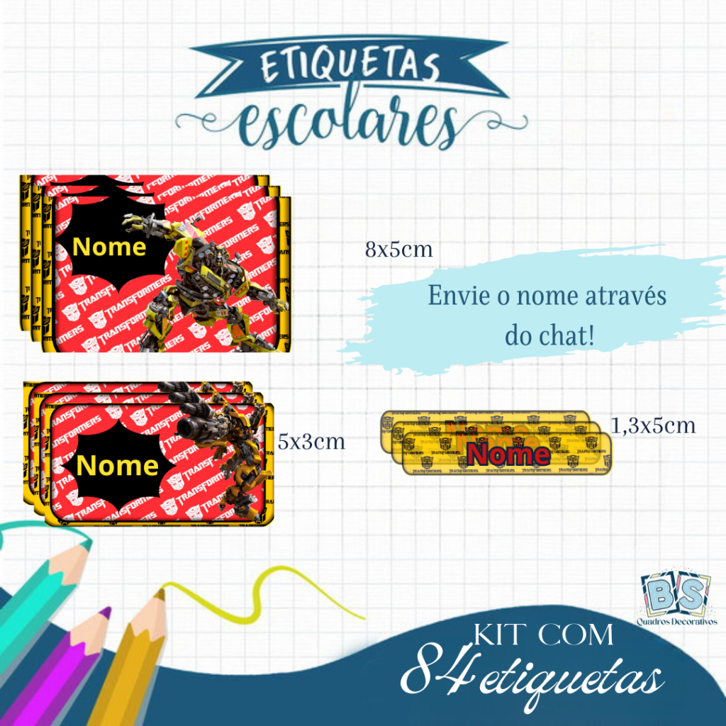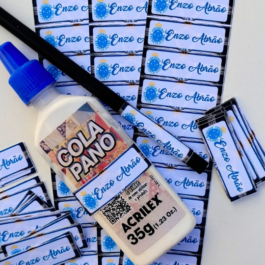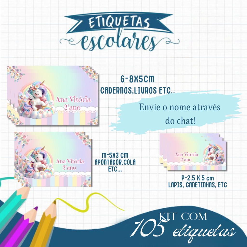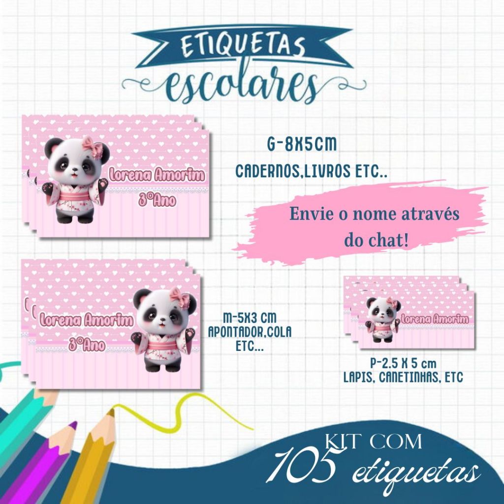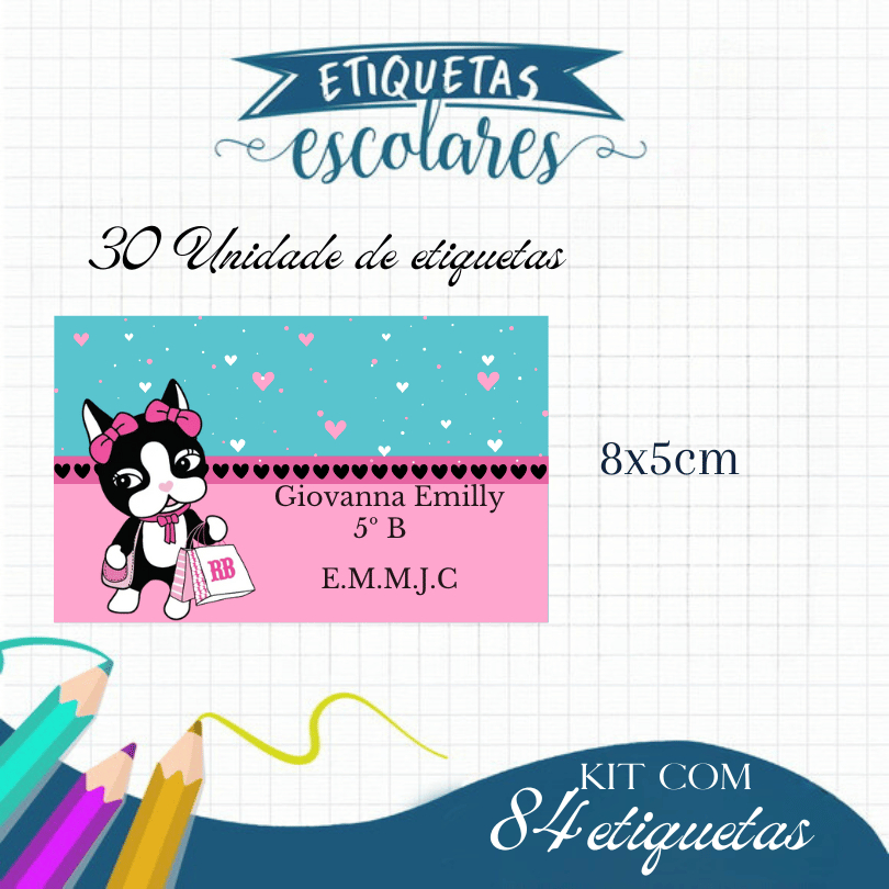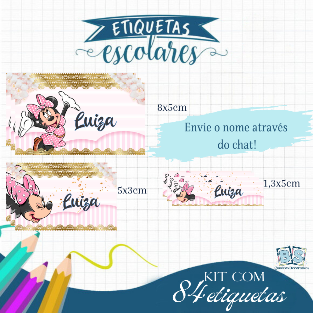 Etiqueta Escolar Adesiva Rebeca, Homem Aranha , Dinossauro, Panda, Stitch e Todos os Temas 105 UNIDADES