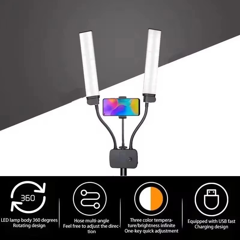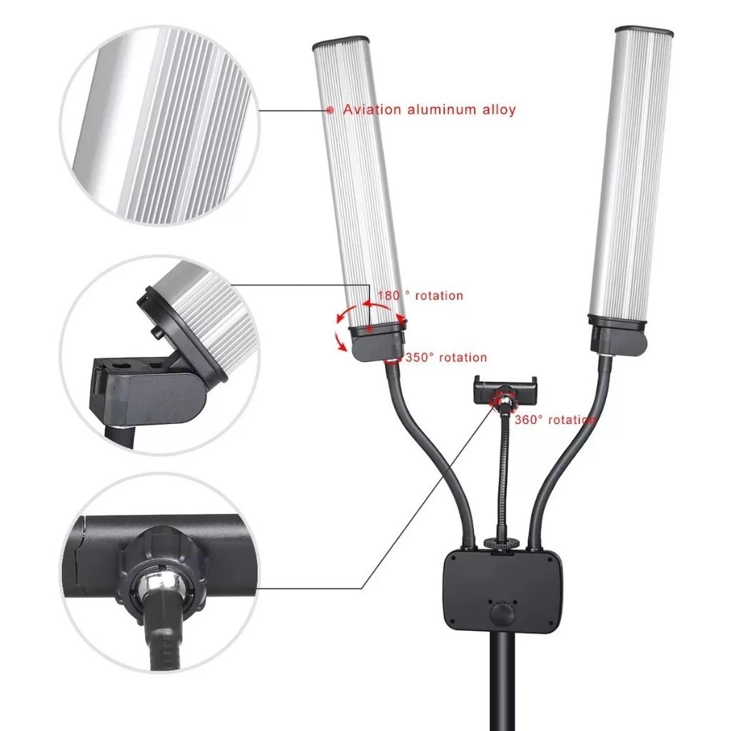 Ring Light Led Com Braços Duplos+Tripe 2.1 Metros Luz de Preenchimento de 45W Iluminação LED Bicolor HD-45X