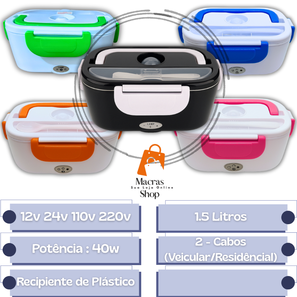 Marmita Elétrica Bivolt Para Casa Automovel Taxi Uber 12v 24v 110v 220v C/ 2 Cabos Original