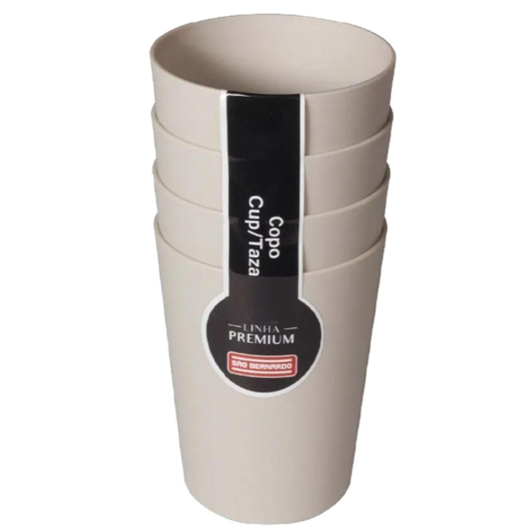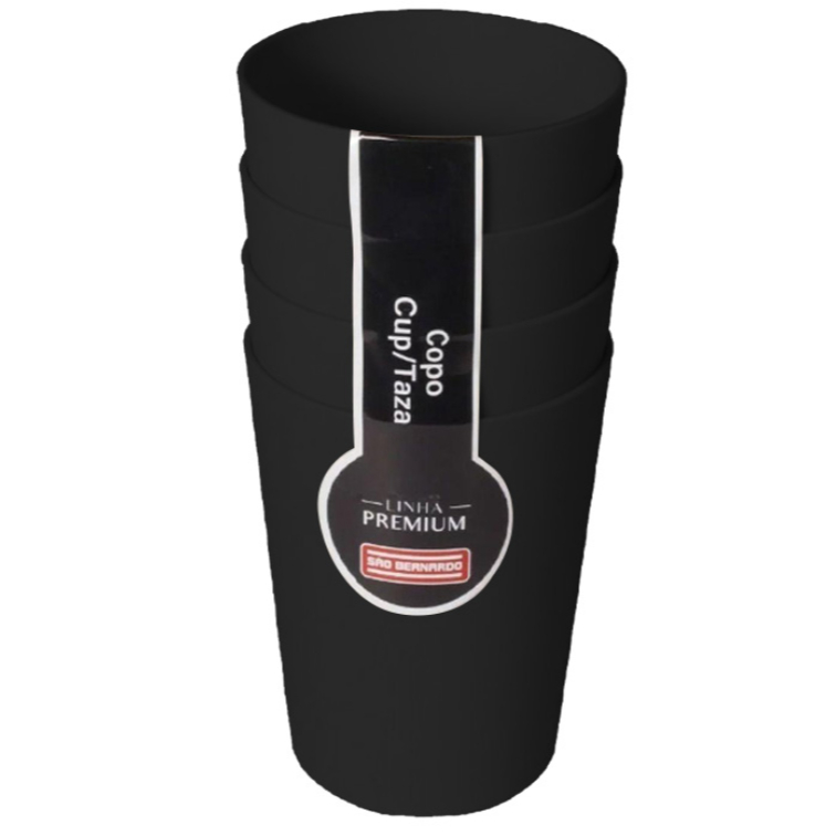 CONJUNTO COM 4 COPOS CINZA OU PRETO 550ML MULTIUSO SAO BERNARDO