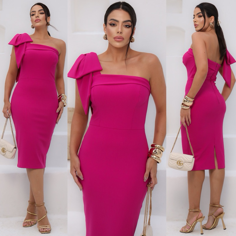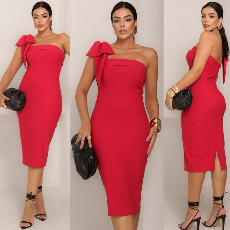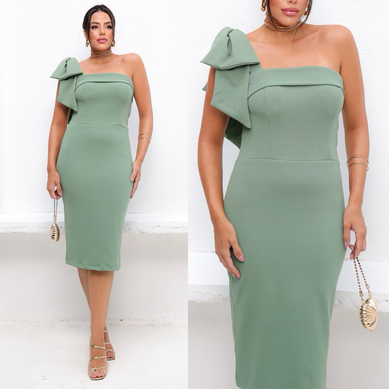 0044 Vestido Mídi 1 Laço Tubinhos- Plus Size - Casamento / Chá revelação / Noiva Civil / Batizado/ Festa / Formatura