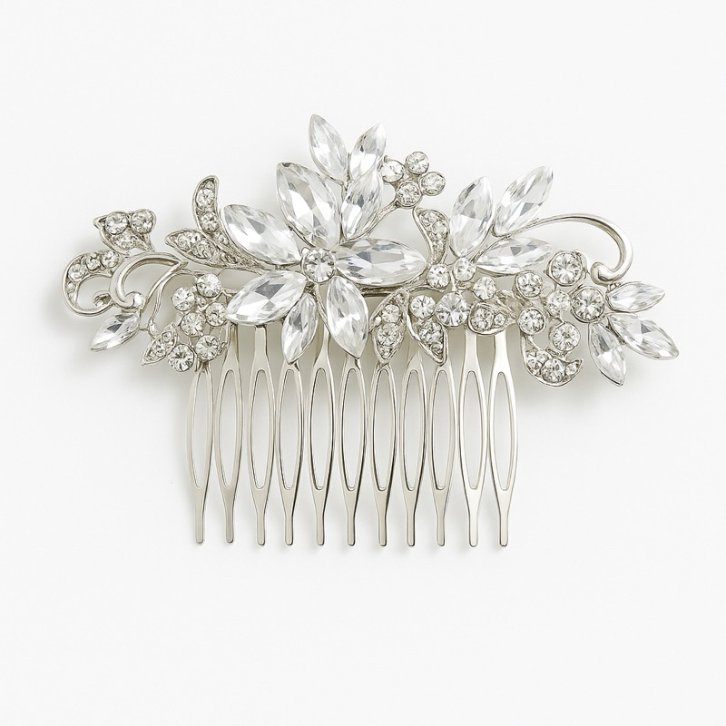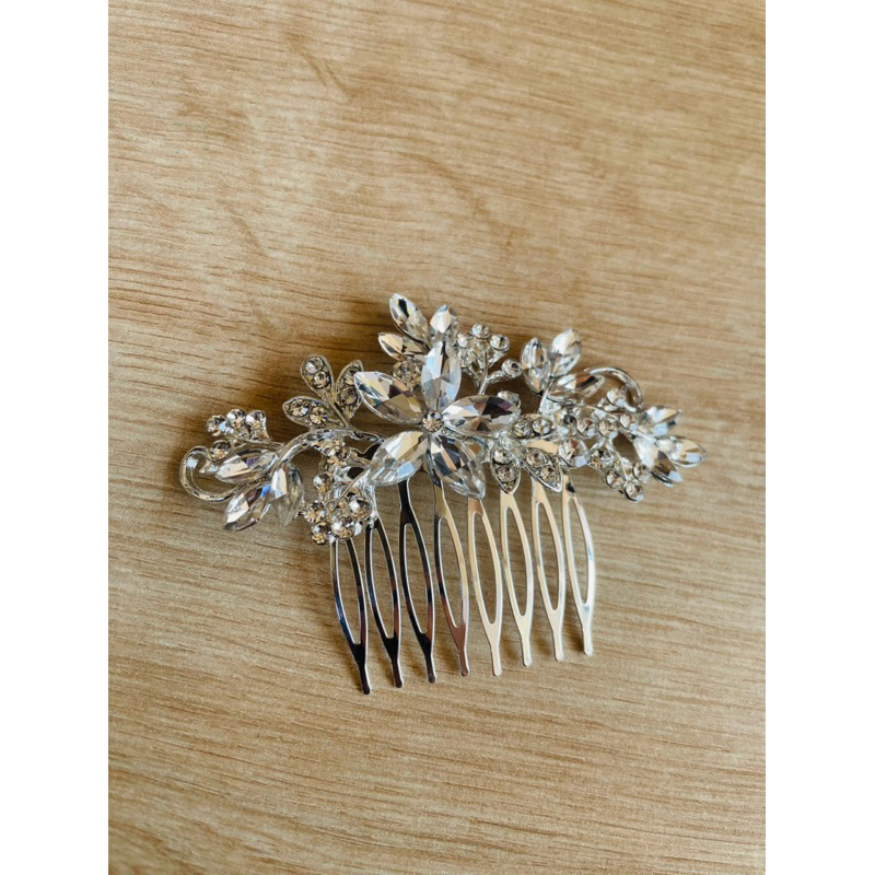 Enfeite arranjo de cristal prata pente para penteados casamento acessório chic noivas madrinhas floristas