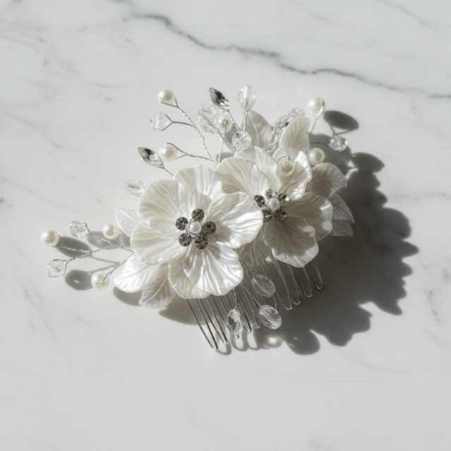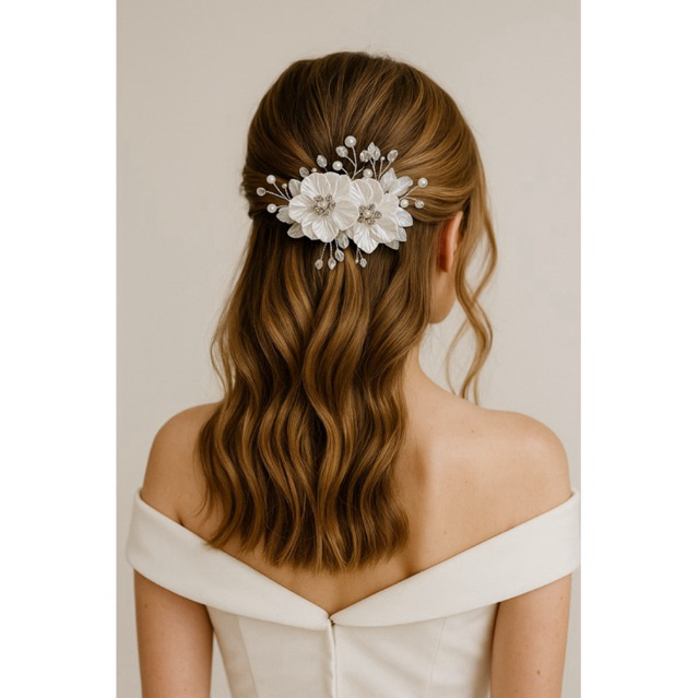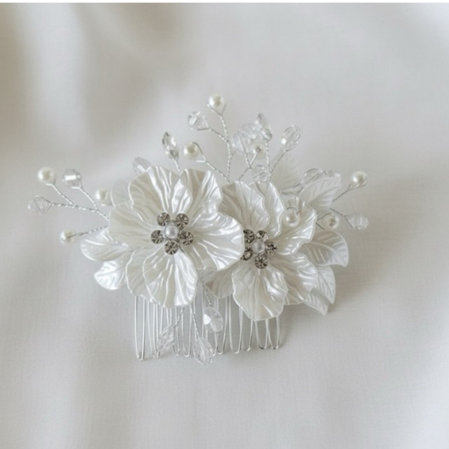 Pente Grinalda com flores peroladas Acessório elagante e romântico para noivas modernas ornamento adorno cabelo casament