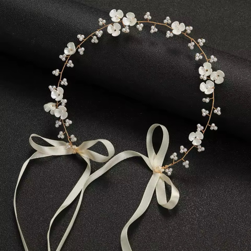 Tiara infantil Enfeite Coroa de Flores e Perolas Arranjo Daminha de Honra arco cabeça primeira comunhão batizado