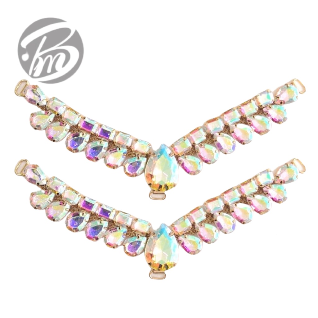 Par de Cabedal para Customização de Chinelos e Sandalias Formato Gota Pedraria Modelo C01
