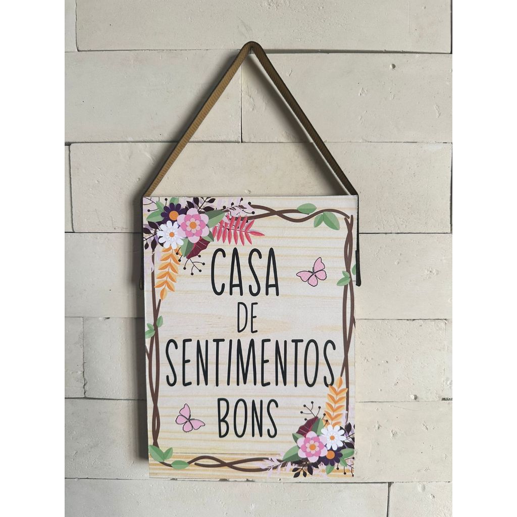 Placa com Alça de Couro Casa de Sentimentos Bons 14X29