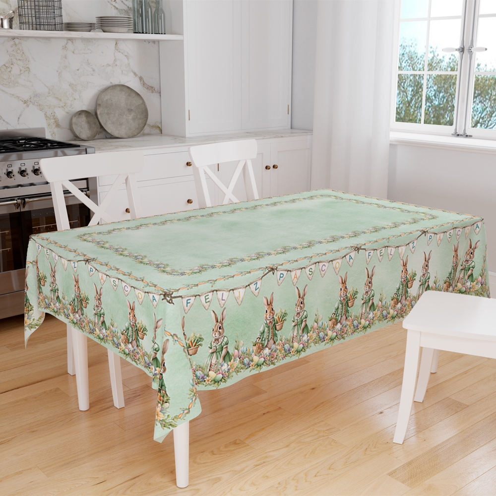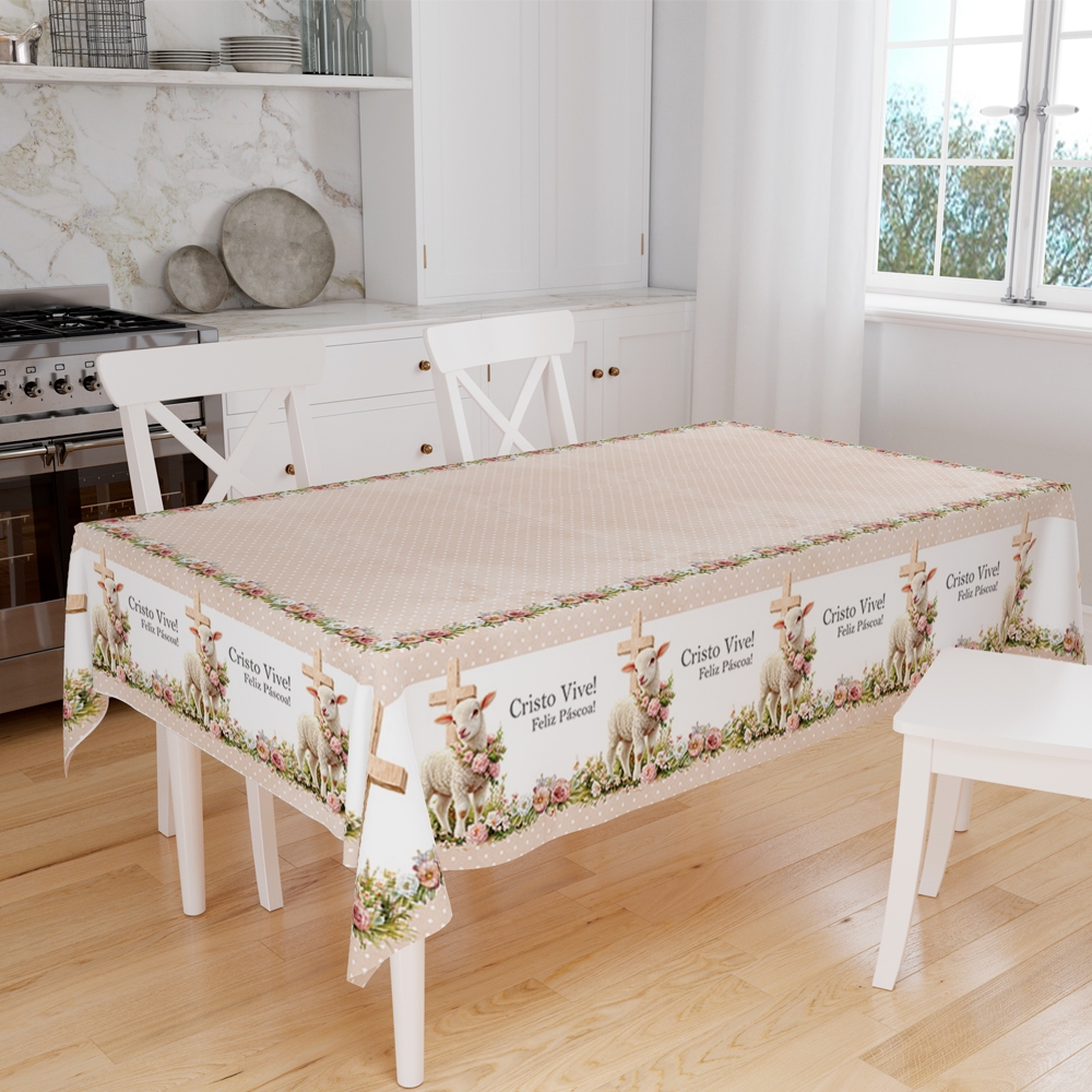 Toalha de Mesa Retangular 140x210cm 6 Lugares Páscoa Decorativa Mesa Posta