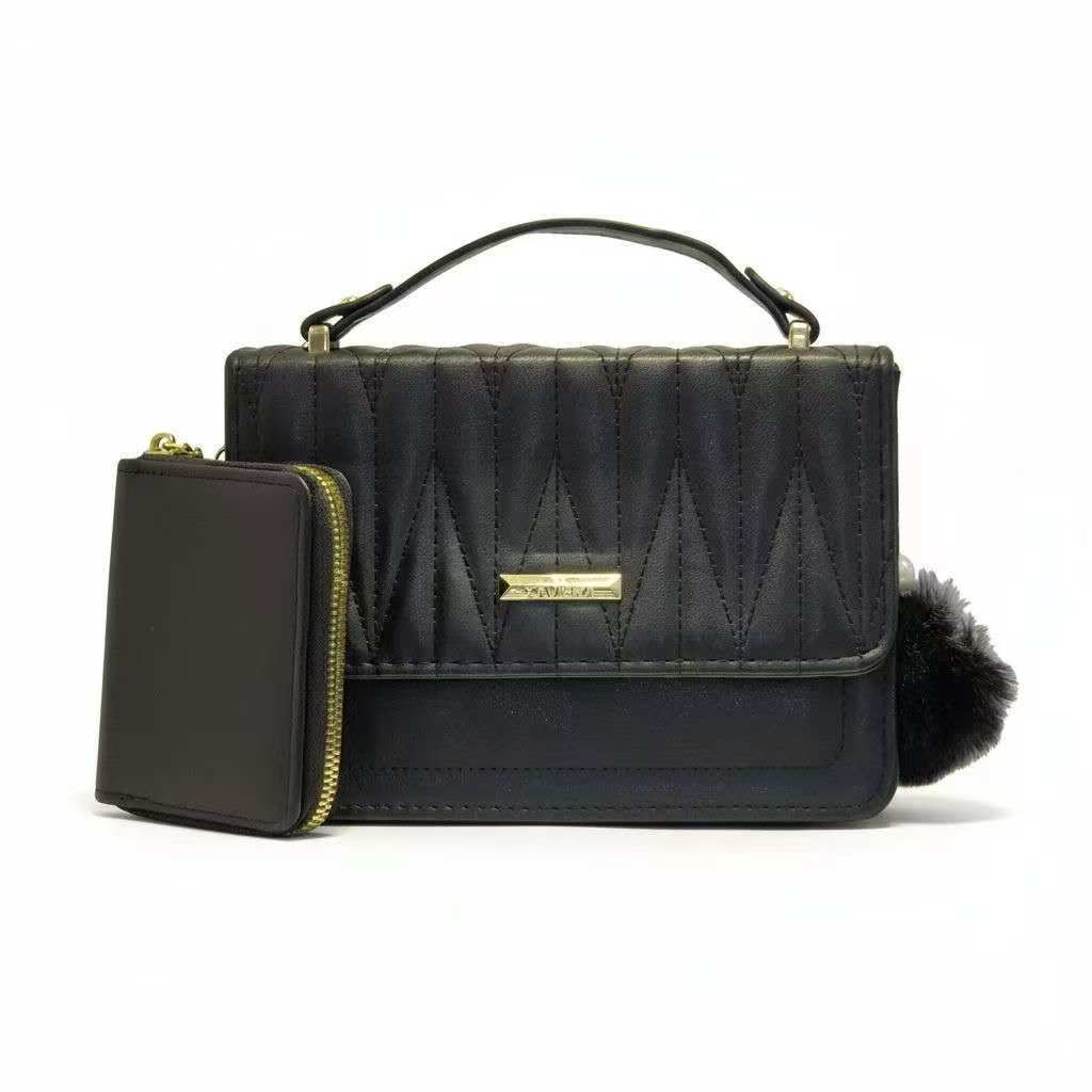 Xaviera Bolsa Transversal Feminina casual com Alça de mão transversal e acessória Carteira e pompom