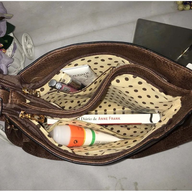 bolsa feminina tiracolo transversal com pingente 2 divisorias 7022