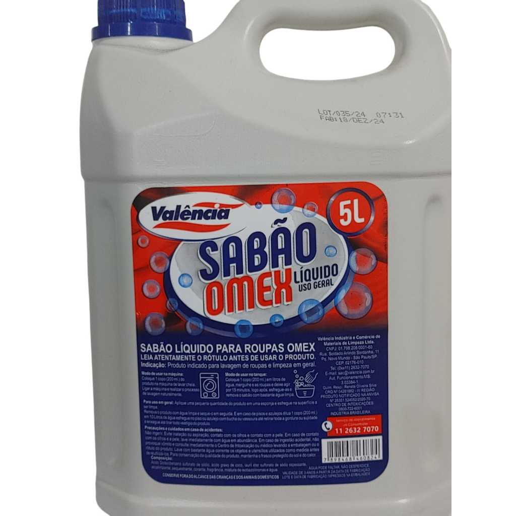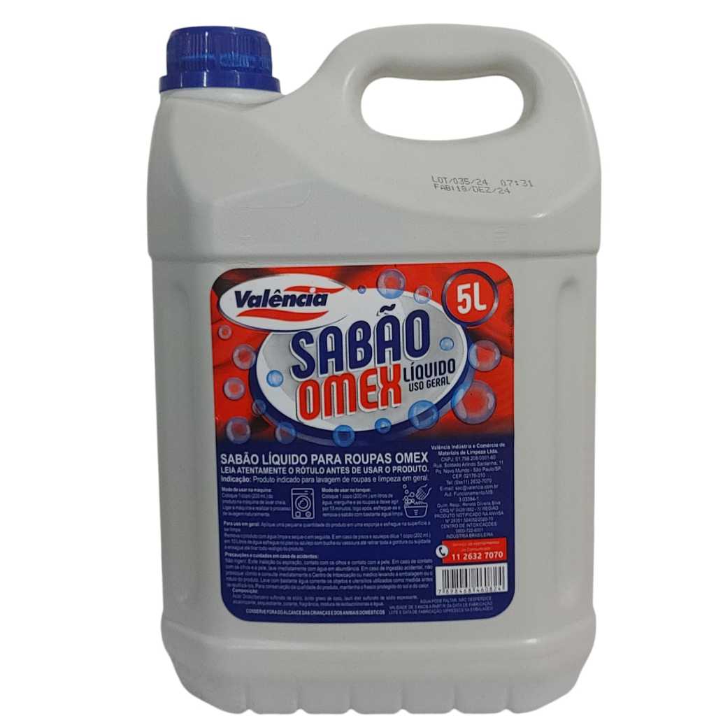 Sabão liquido azul 5 litros 2 litros para roupa Valencia lava roupas Omex detergente roupa