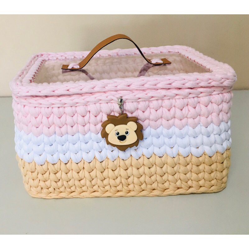 Farmacinha Crochê Fio de Malha Tampa Acrílico Safari Baby