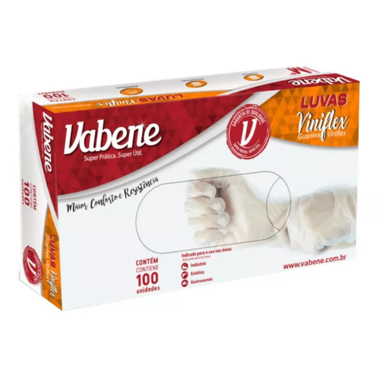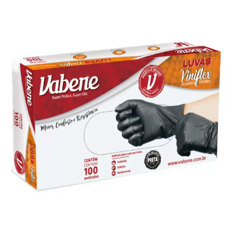Kit 2 Cartuchos de Luvas Descartável Viniflex Preta ou Trasparente Vabene Sem Pó Tam. P M G 100 UN