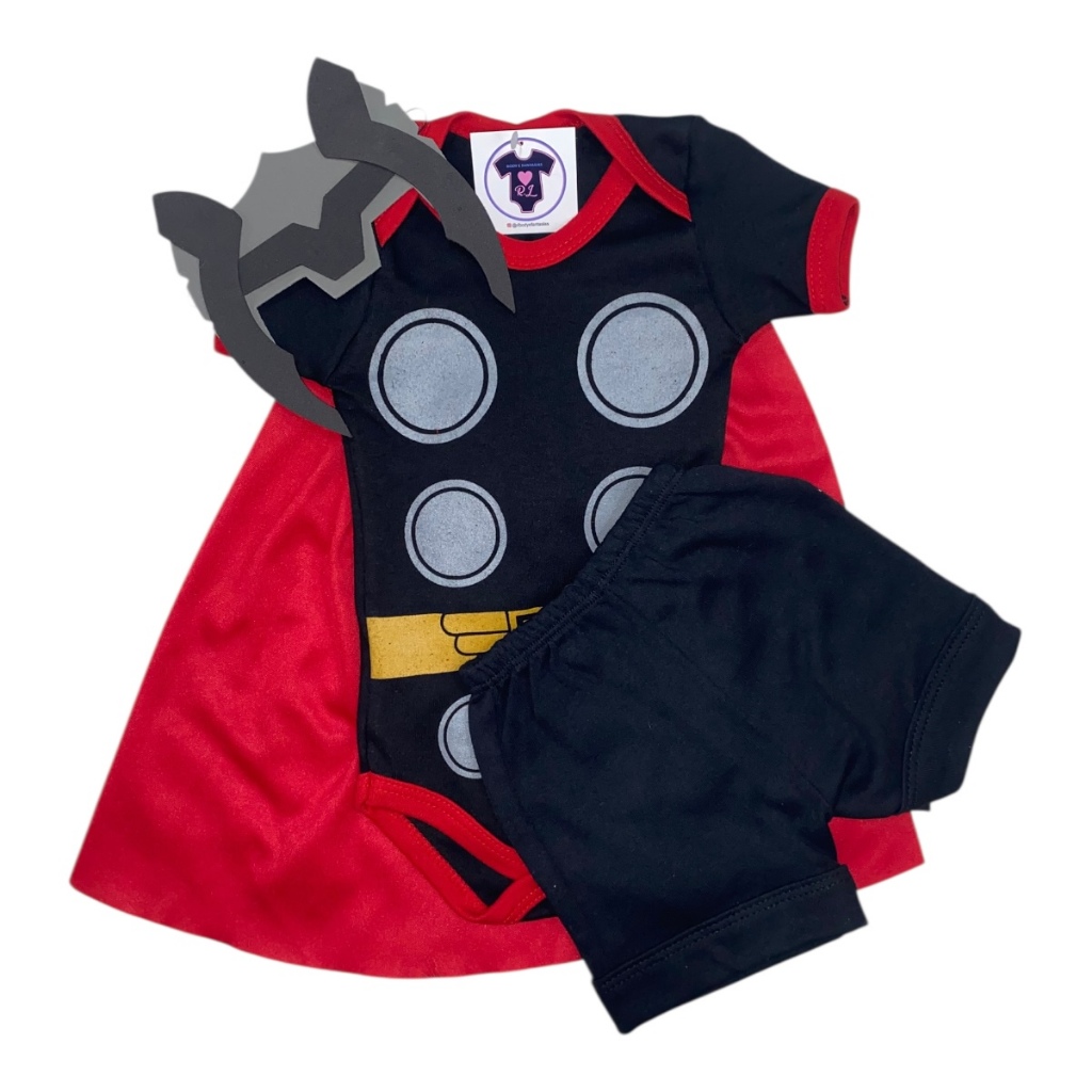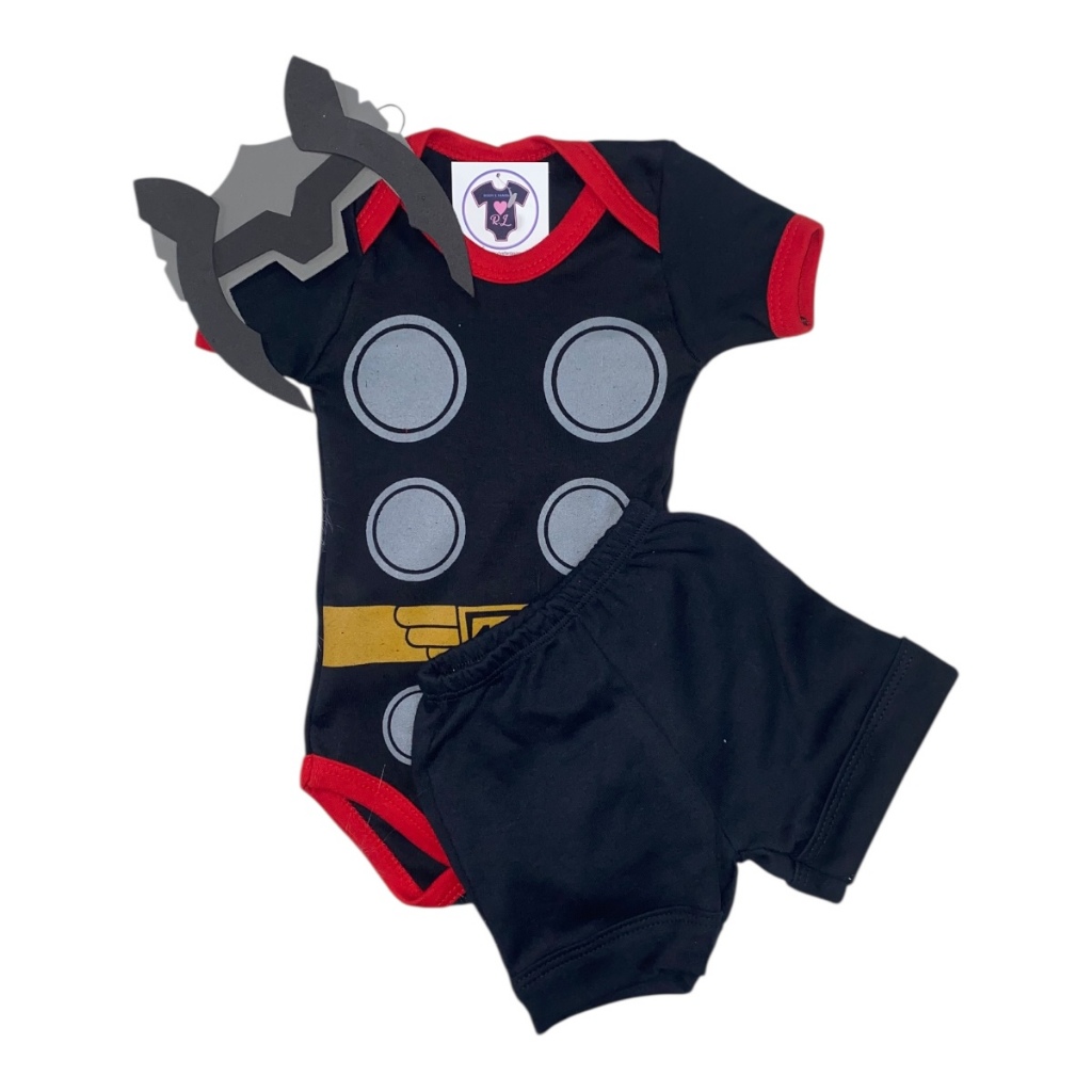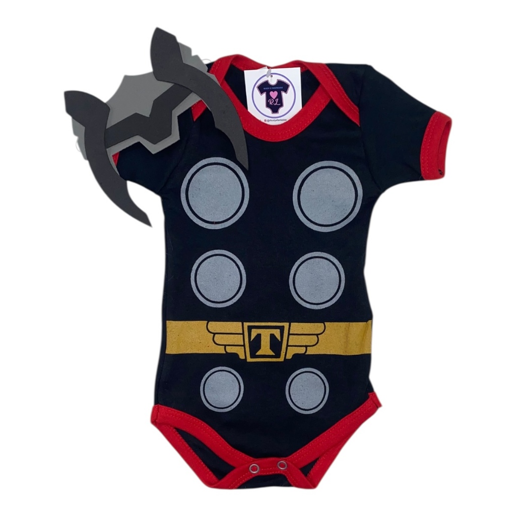 Body Bebe Menino Thor + Mascara - Temático - Super Heróis - Mesversário