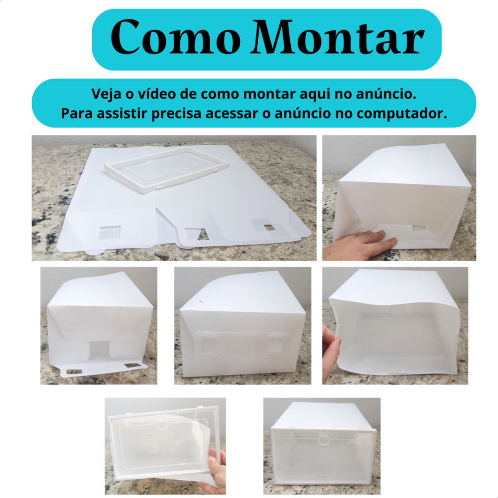 Caixa Organizadora de Tênis Sapatos Chinelo Branca Empilhavel Dobrável 10 Unidades