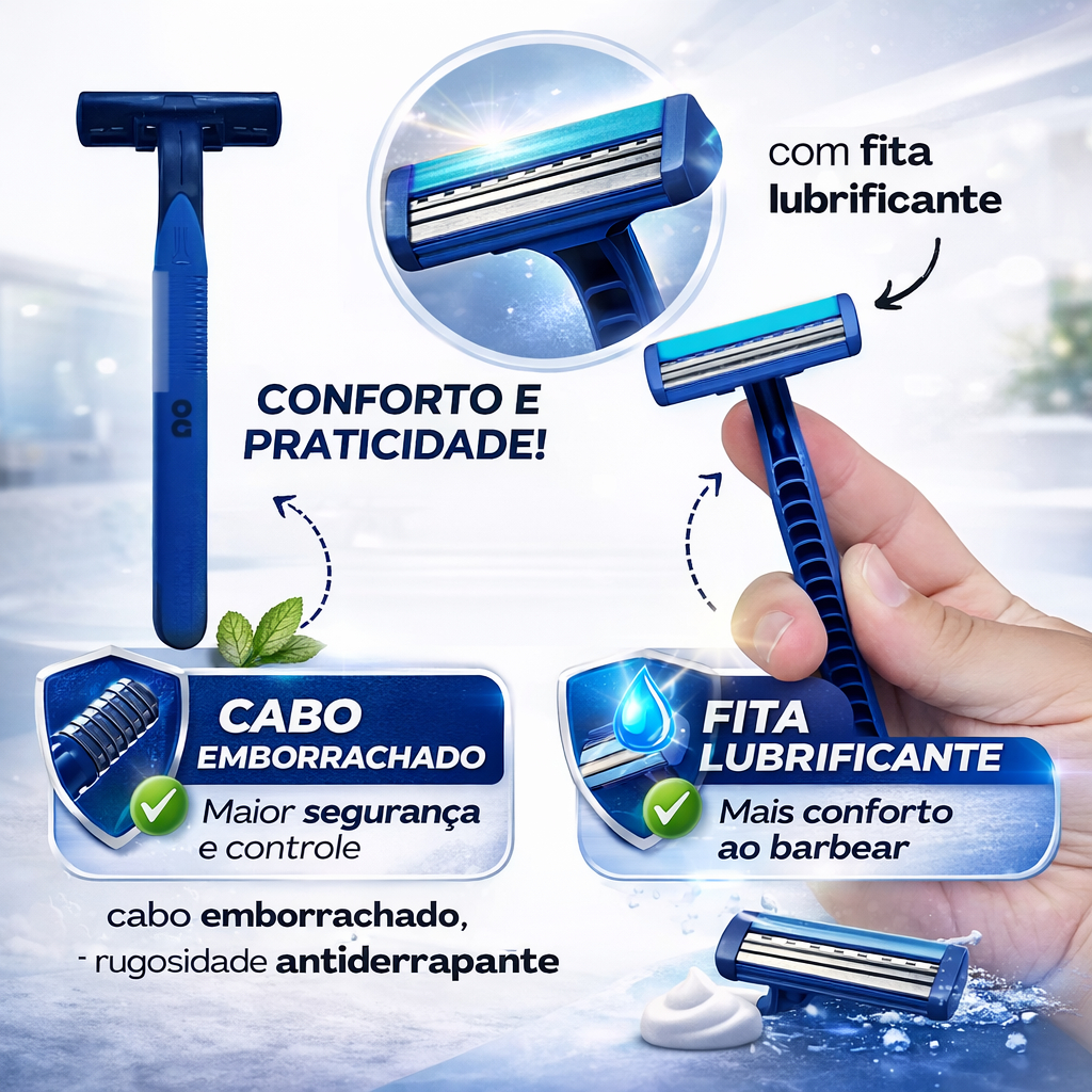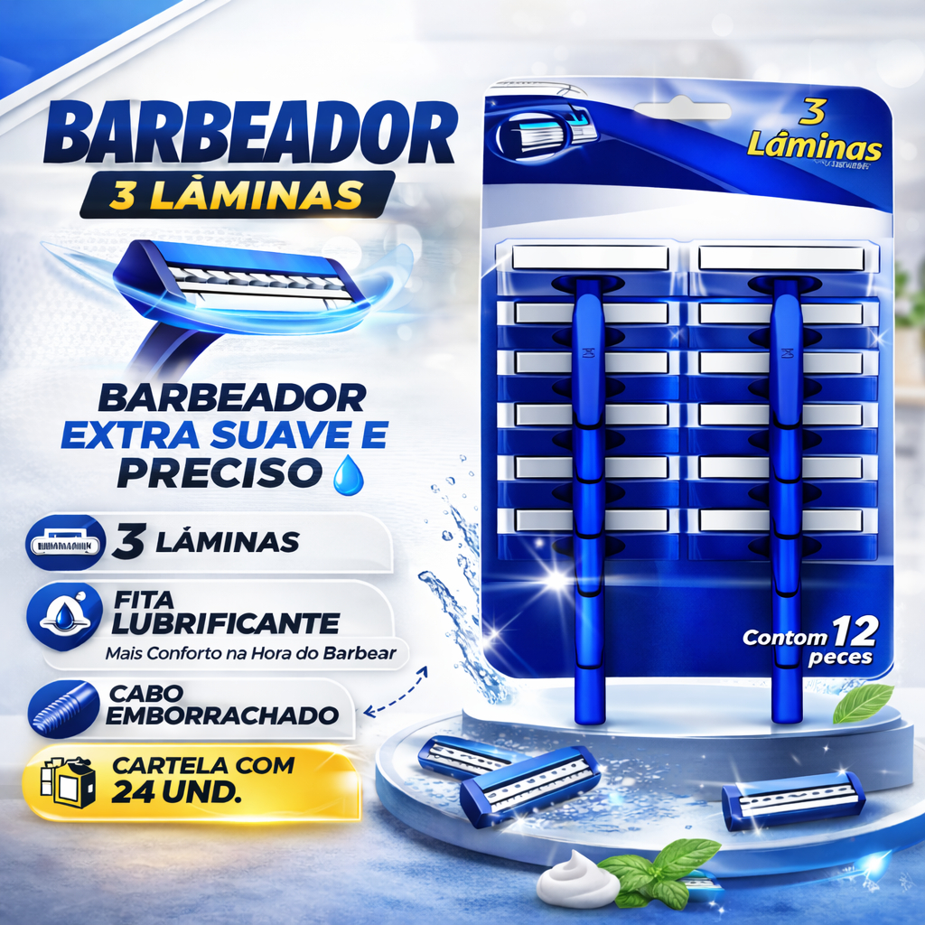 Aparelho De Barbear Barbeador Descartável Com 3 lâmina Com Fita Lubrificante Cartela 12 E 24 UND.