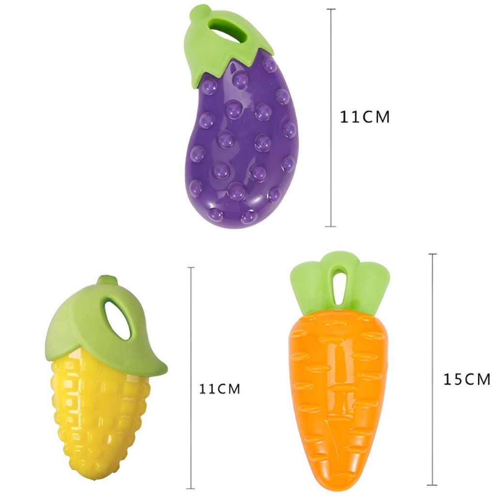 Brinquedo Pet Mordedor Petisco Berinjela Cenoura Milho De Borracha Macia Cachorro e Gatos Com Apito