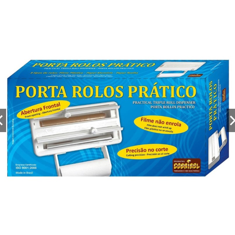 Porta Rolo Prático 3 tipos de rolos: filme plástico, papel toalha e papel alumínio