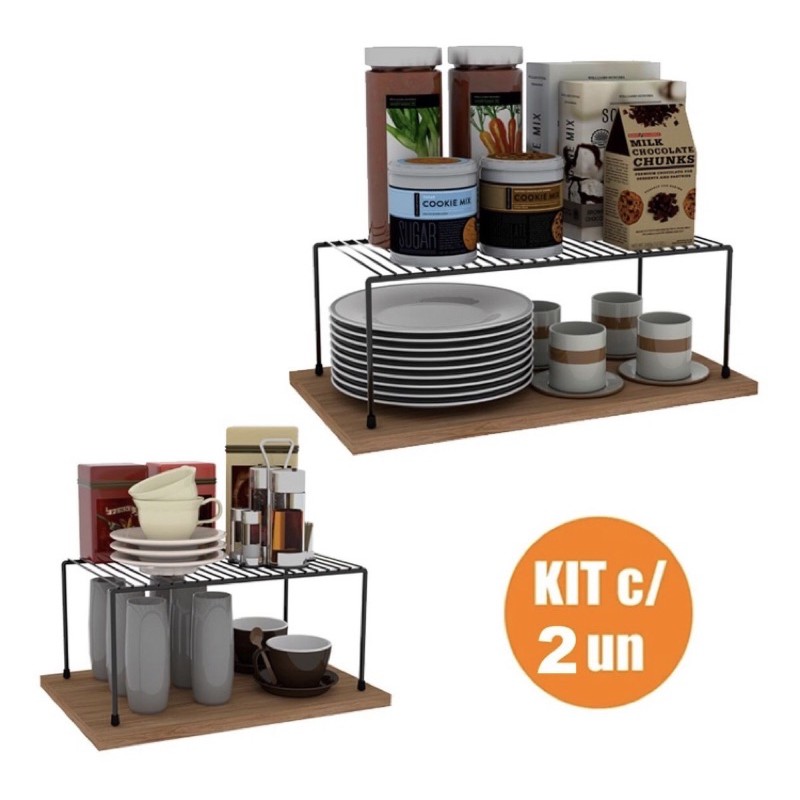 Kit Organizador Cozinha Aramado Prateleiras Aço Luxo 2 Tamanhos