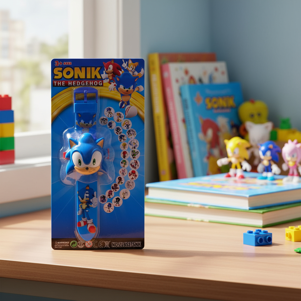 Relógio Sonic 24 Imagens Infantil Projetor Brinquedo Mostra a Hora Estiloso Presente Menino