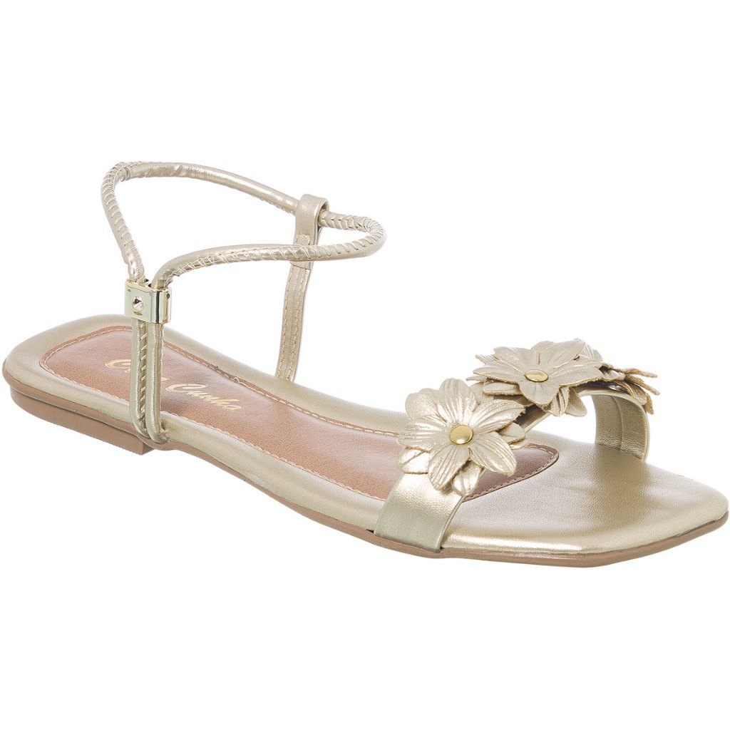 Rasteirinha Sandália Calce Fácil Com flores Ouro light Calçe Facil Promoção