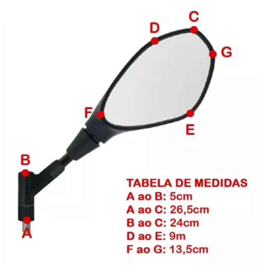 Espelho Retrovisor Modelo F800 RVG Retratil Giro 360 Articulado Lente Convexa Para Honda E Yamaha