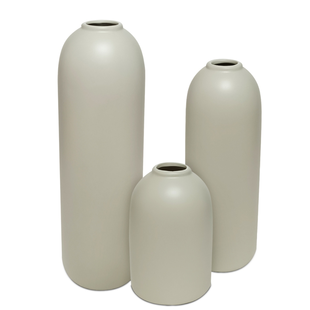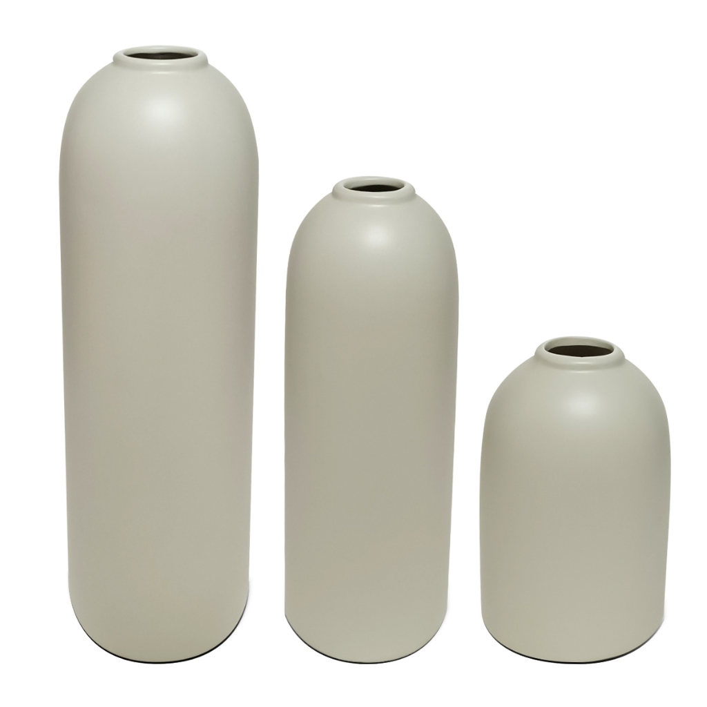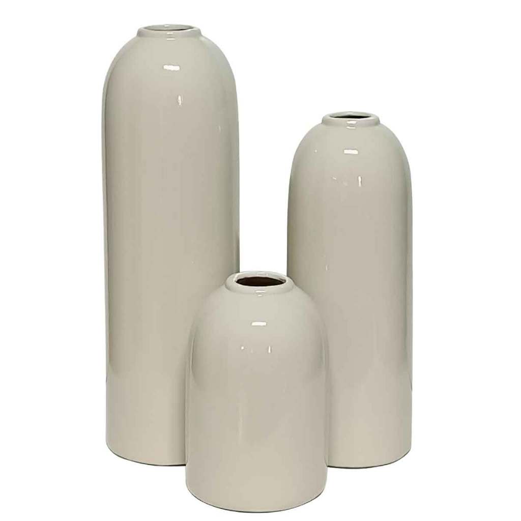 Conjunto trio Vasos Decorativos cerâmica p/ flores artificiais permanentes decoração rack Off white