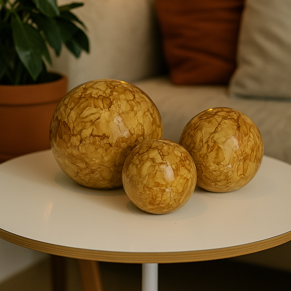 trio de esferas bolas ceramica efeito marmorizado enfeite decoração centro de mesa
