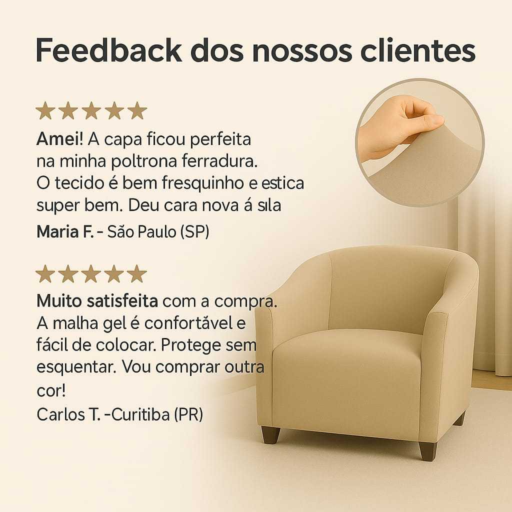 Capa Estilo Ferradura para Poltrona – Malha Gel Elástica, Encaixe Fácil e Seguro