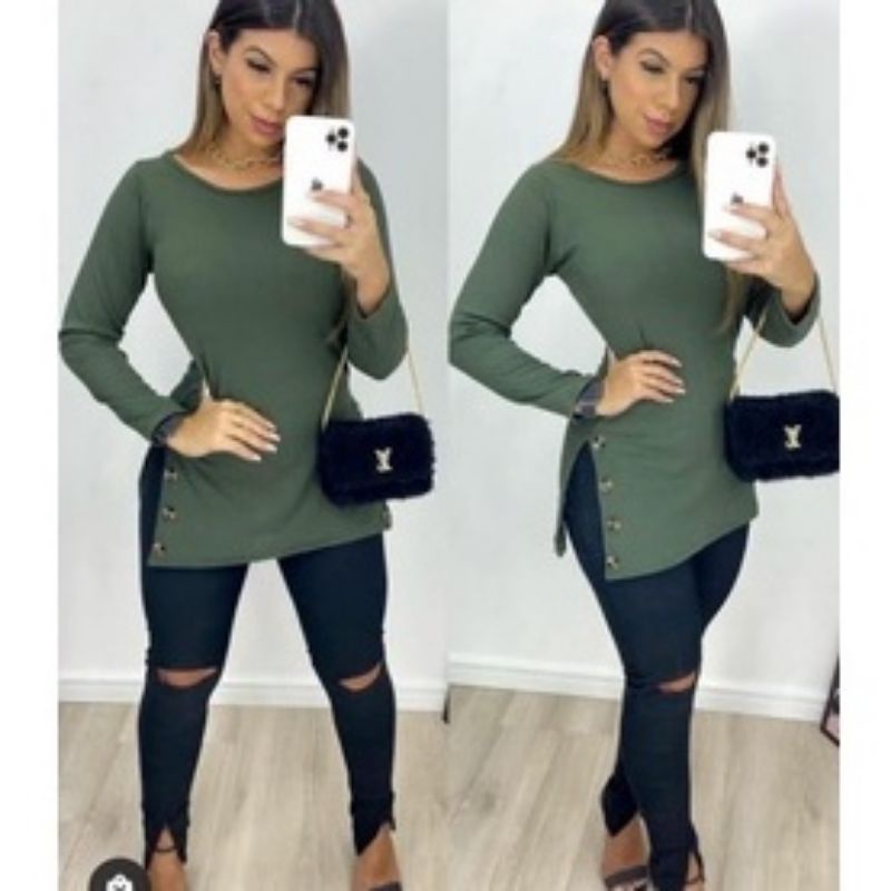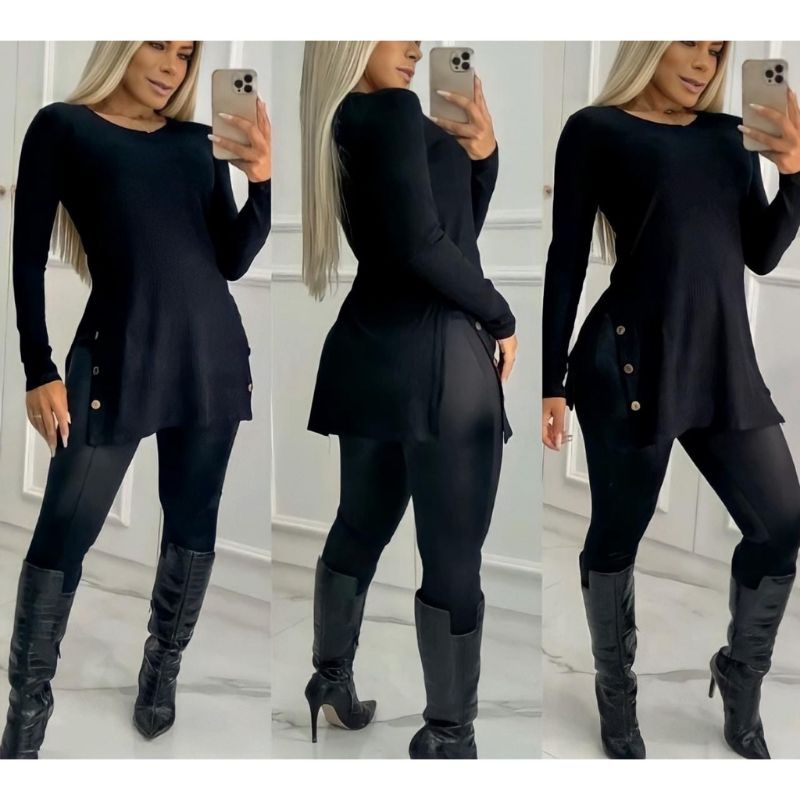 Blusa Feminina Tapa Bumbum Veste Legging Malha Canelada