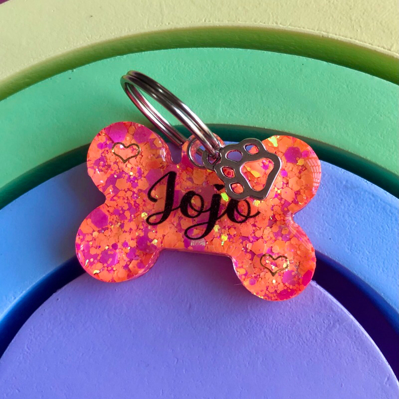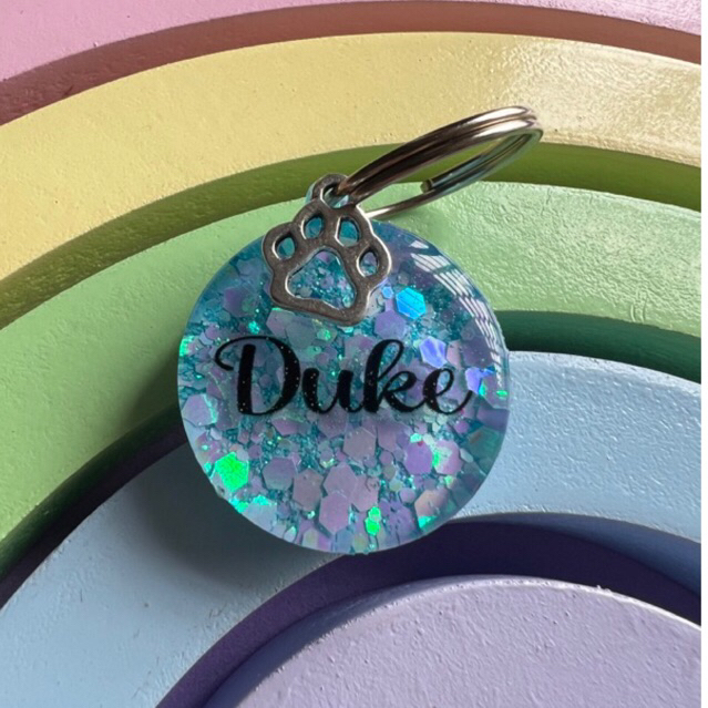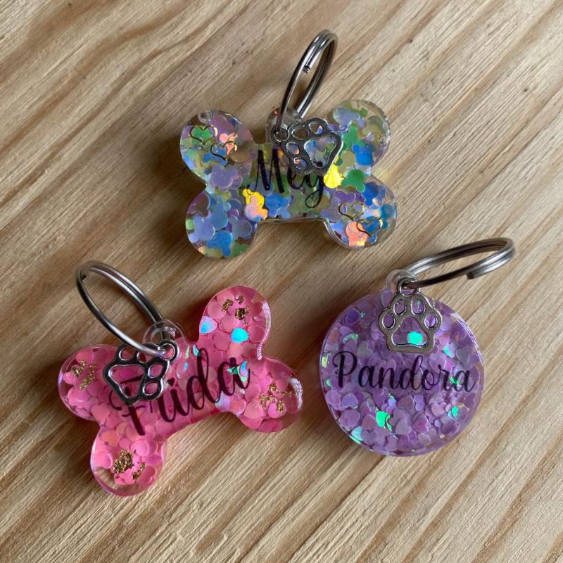 Tag de identificação personalizada com pingente de patinha - tamanho M - plaquinha de identificação em resina epóxi