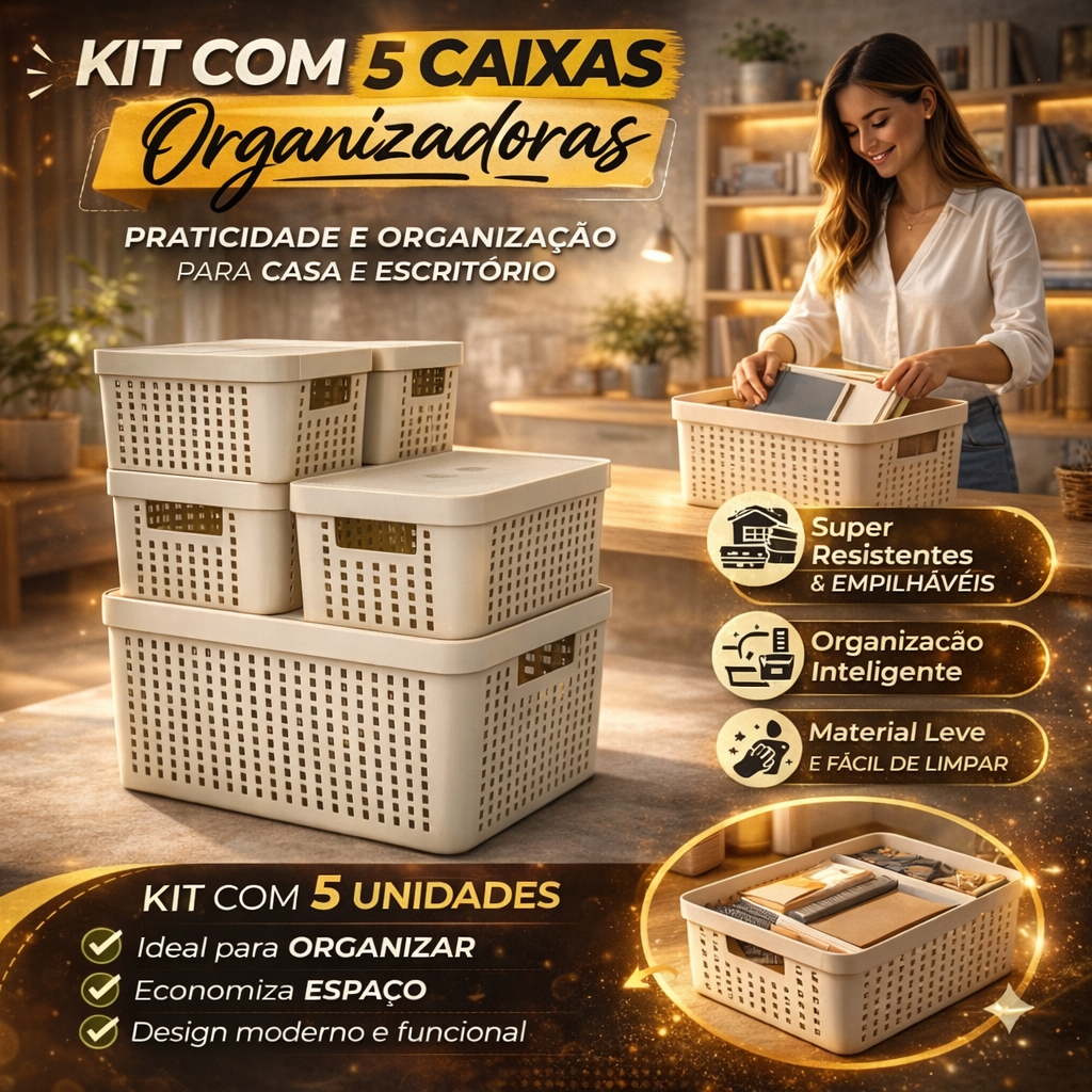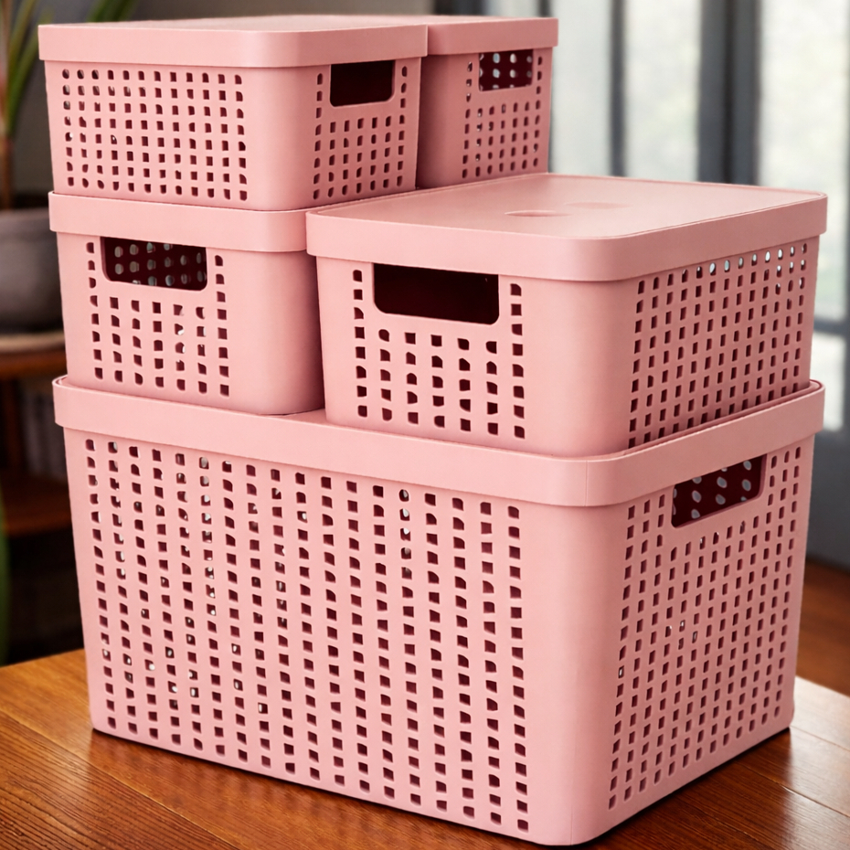 Kit 5 Caixas Organizadoras com Tampa Cesto Grande de Plástico 2 Litros 4,5 Litros 17 Litros