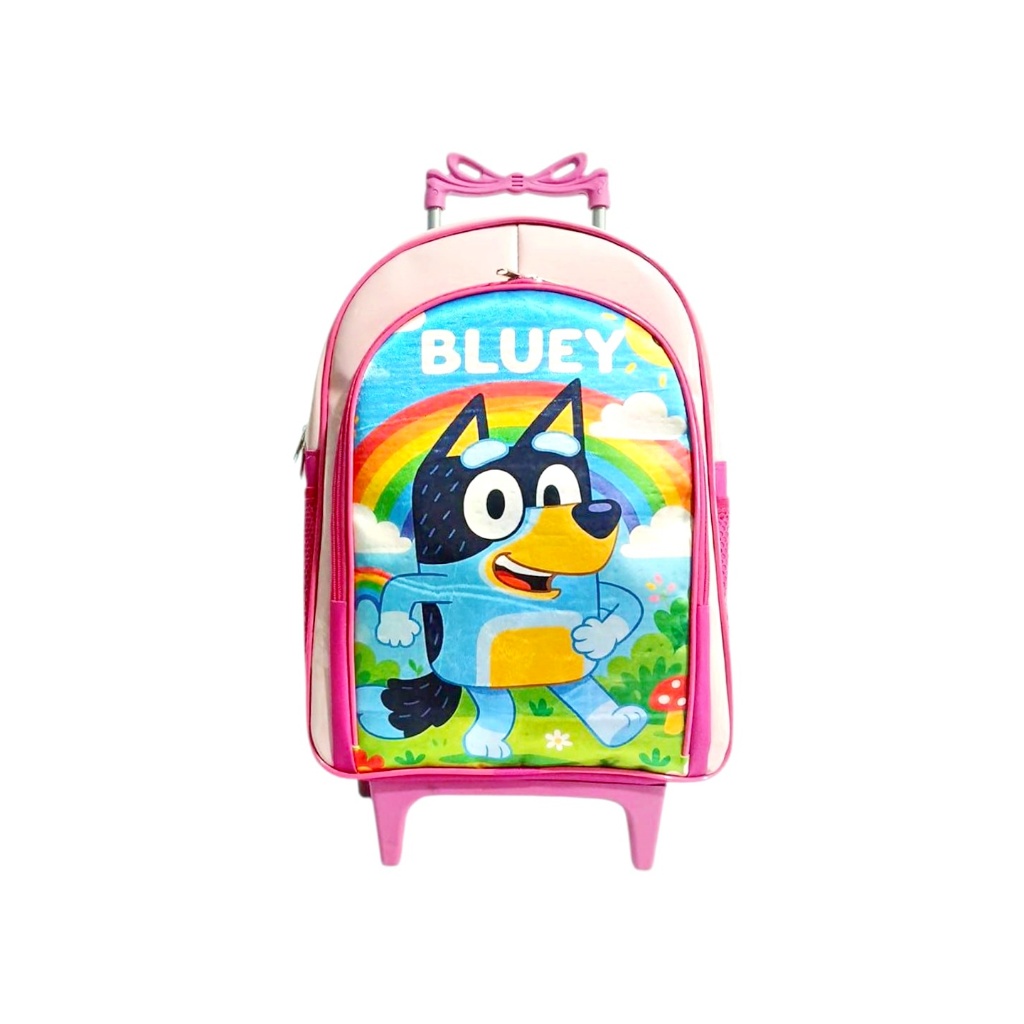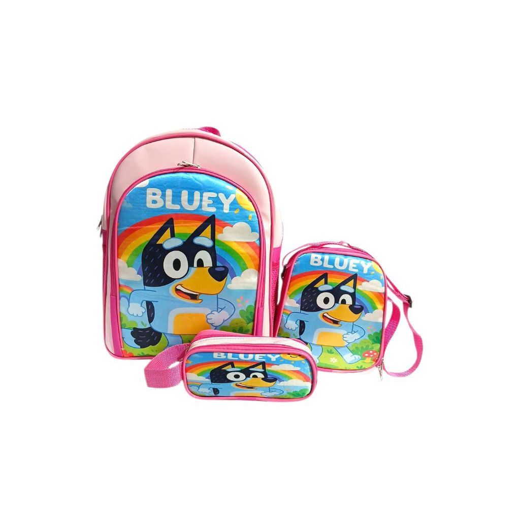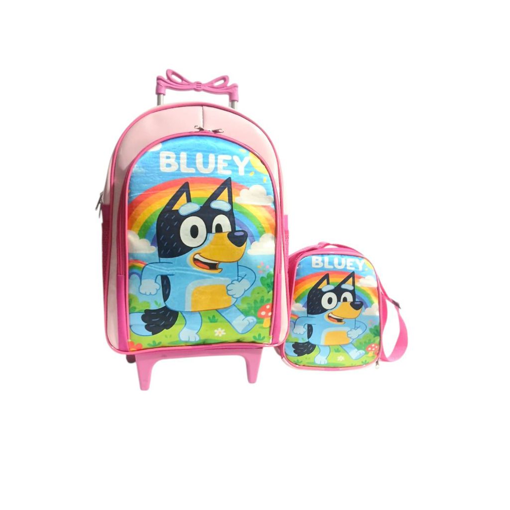 Mochila Rodinhas Bluey Lancheira Estojo Kit Escolar Rosa