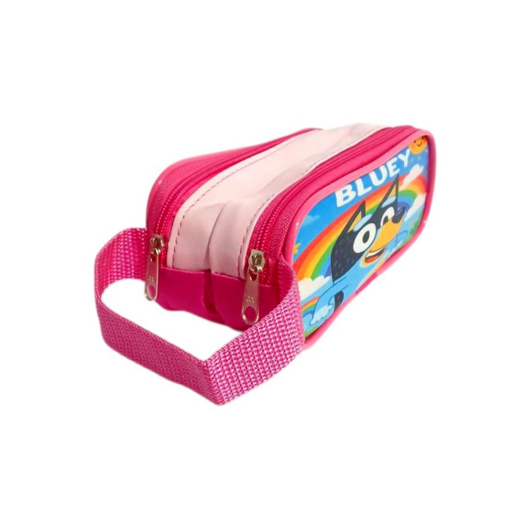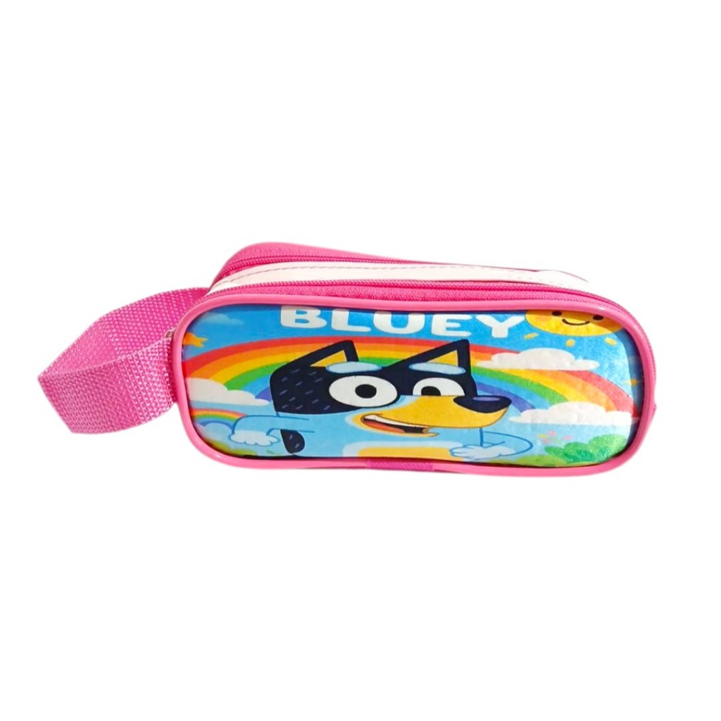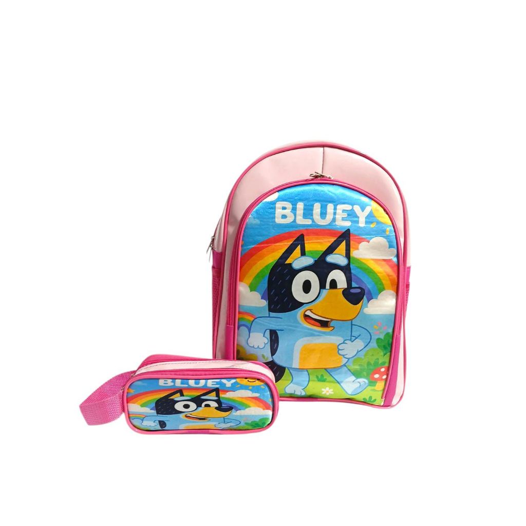Mochila Rodinhas Bluey Lancheira Estojo Kit Escolar Rosa