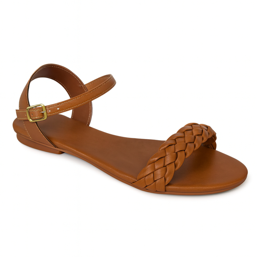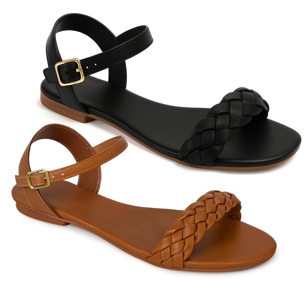 Sandália Feminina Rasteira Confortável Rasteirinha Sem Salto Trança Fácil Calçar Calçado Sintético