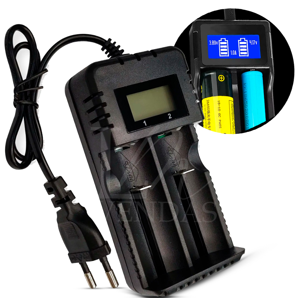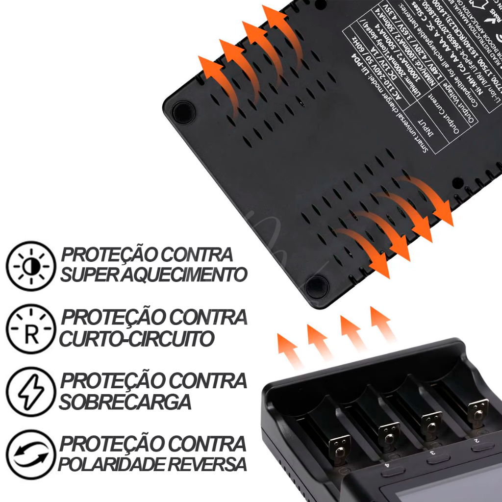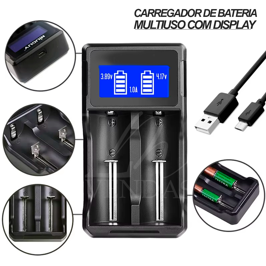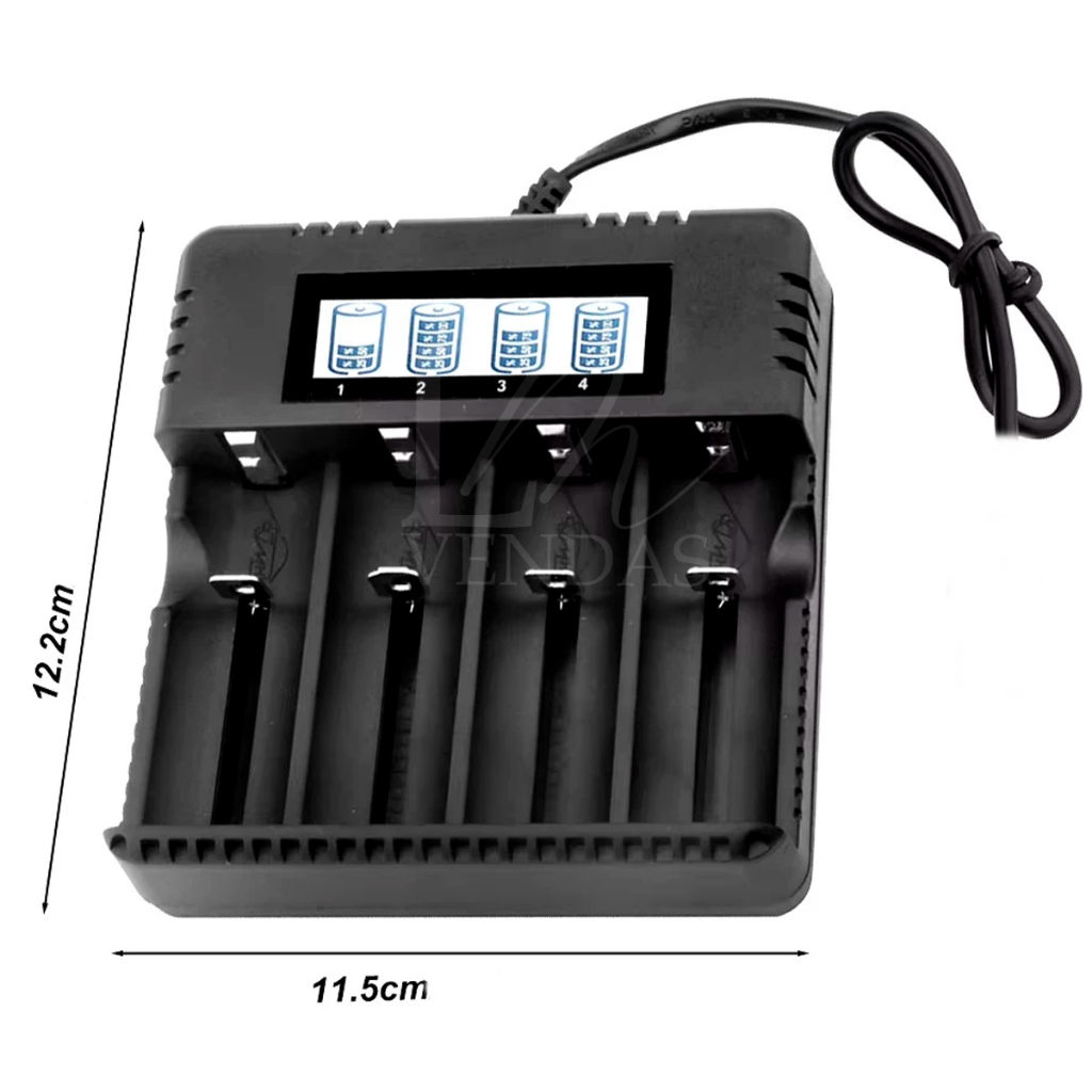 Carregador De Bateria Lanterna Bivolt Display Lcd 4 e 2 Baterias 26650-18650-14500-16340 AA/AAA