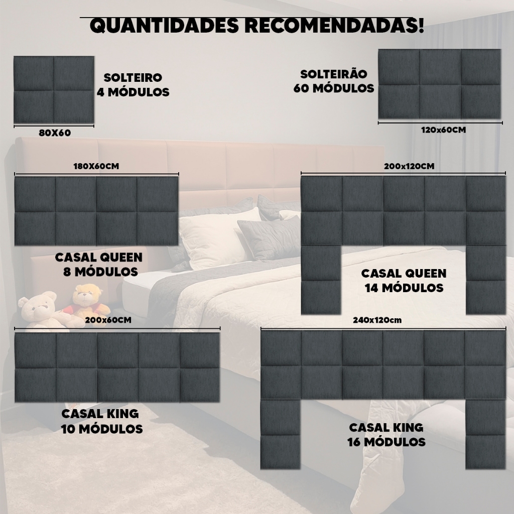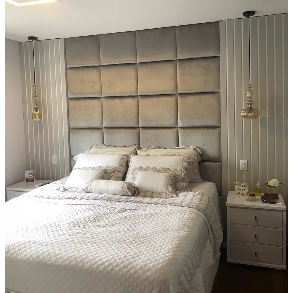 Cabeceira Estofada Modular 40x30 Autocolante para Cama Box Casal Queen King